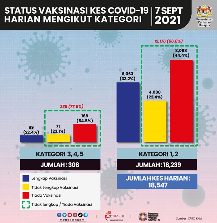 - Daripada 18,547 kes harian yang dilaporkan pada hari ini (7 September 2021);