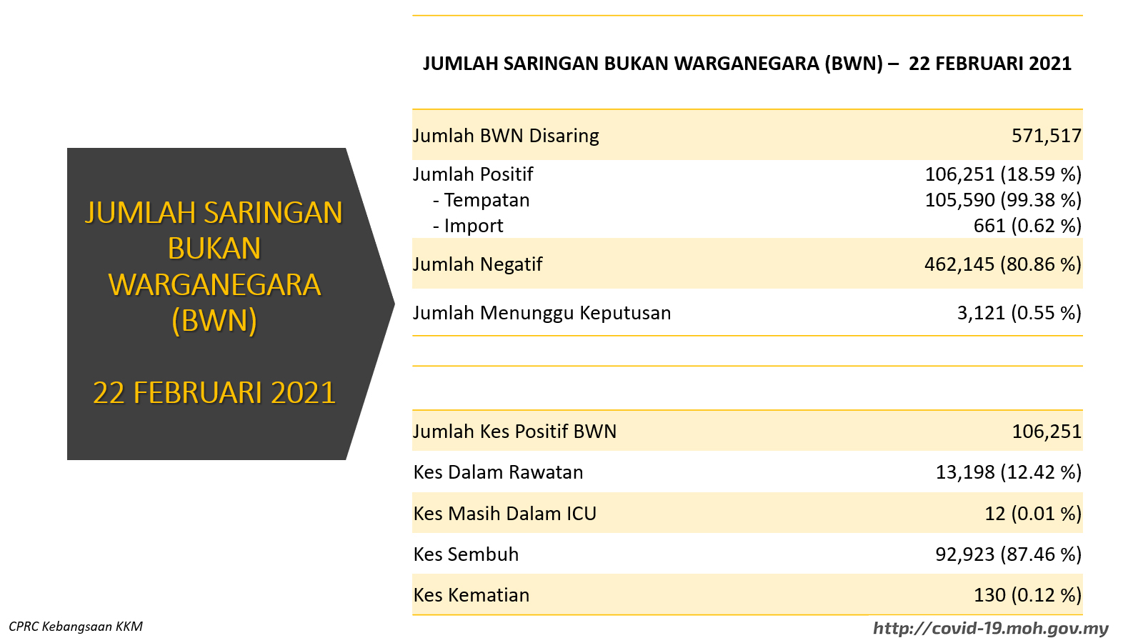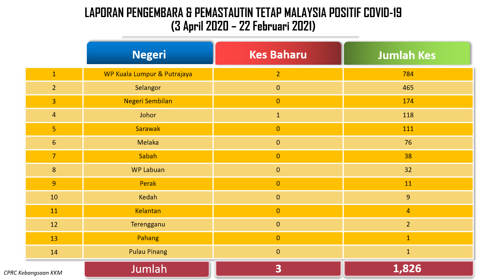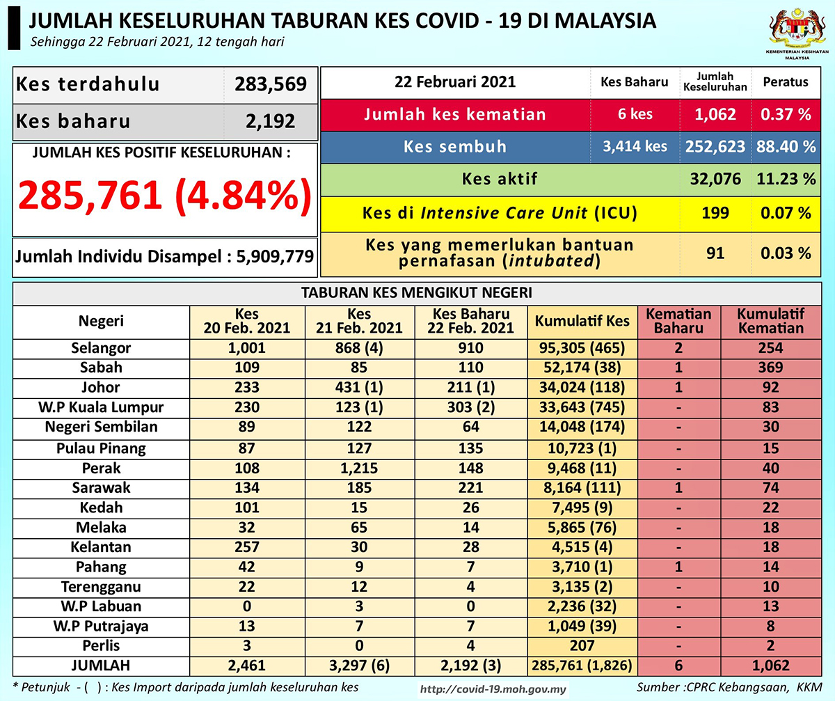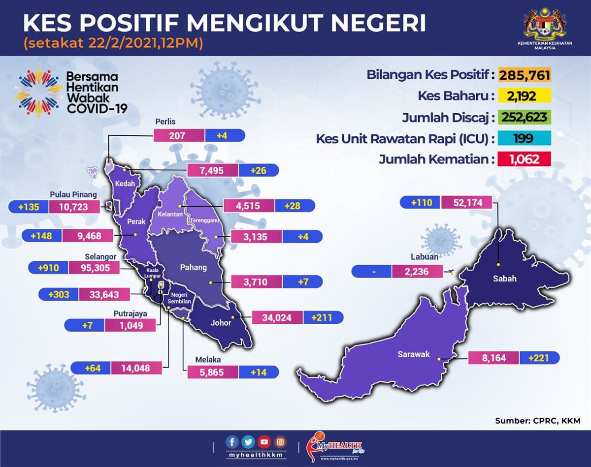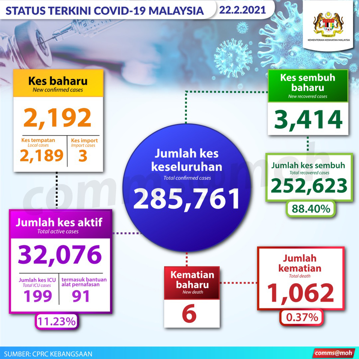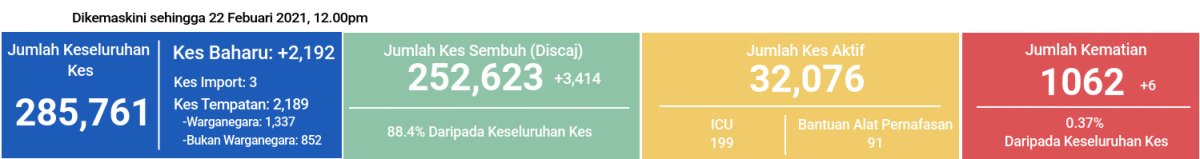 Ringkasan Status Terkini COVID-19 Di Malaysia, 22 Februari 2021