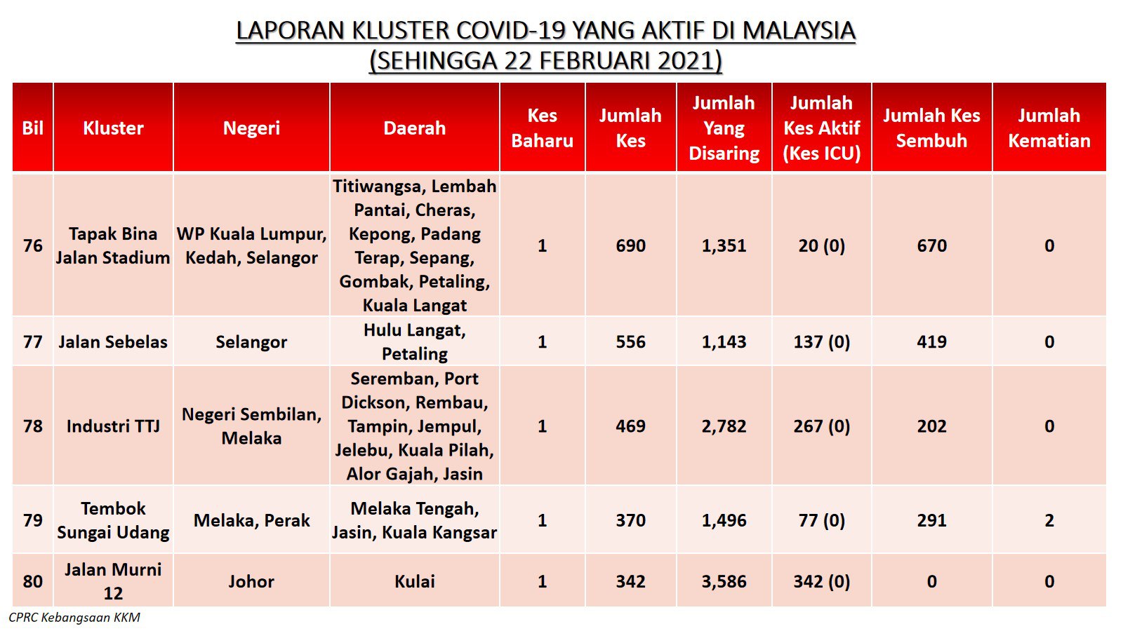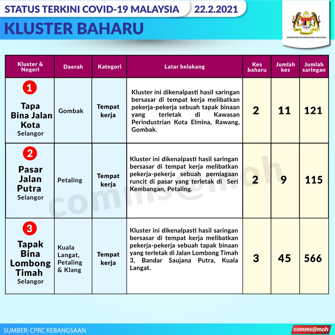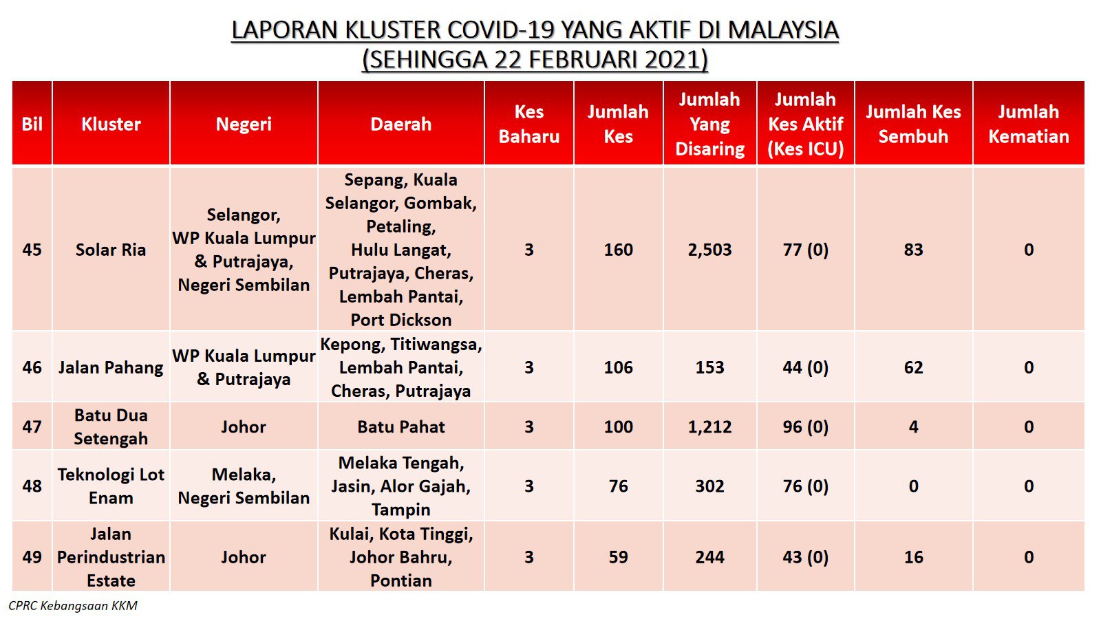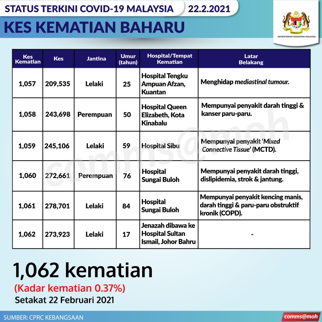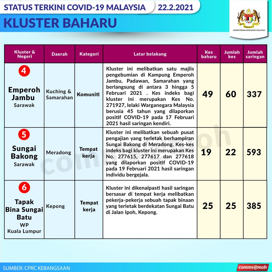 Ringkasan Status Terkini COVID-19 Di Malaysia, 22 Februari 2021