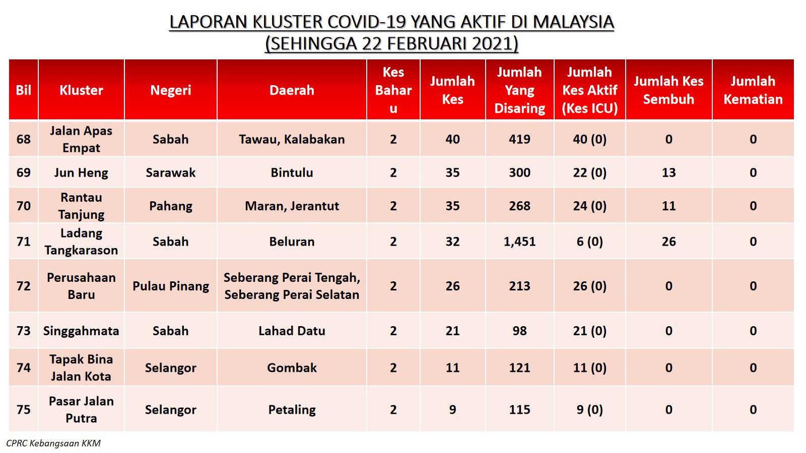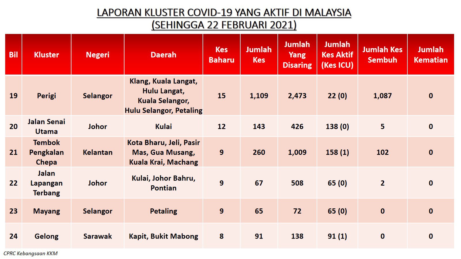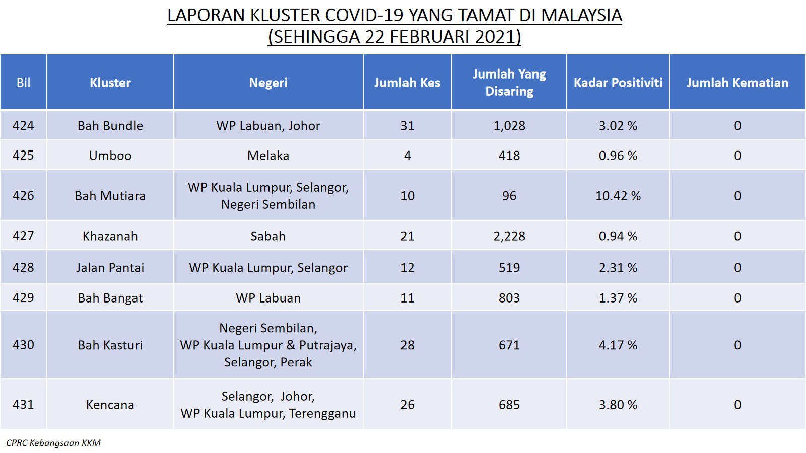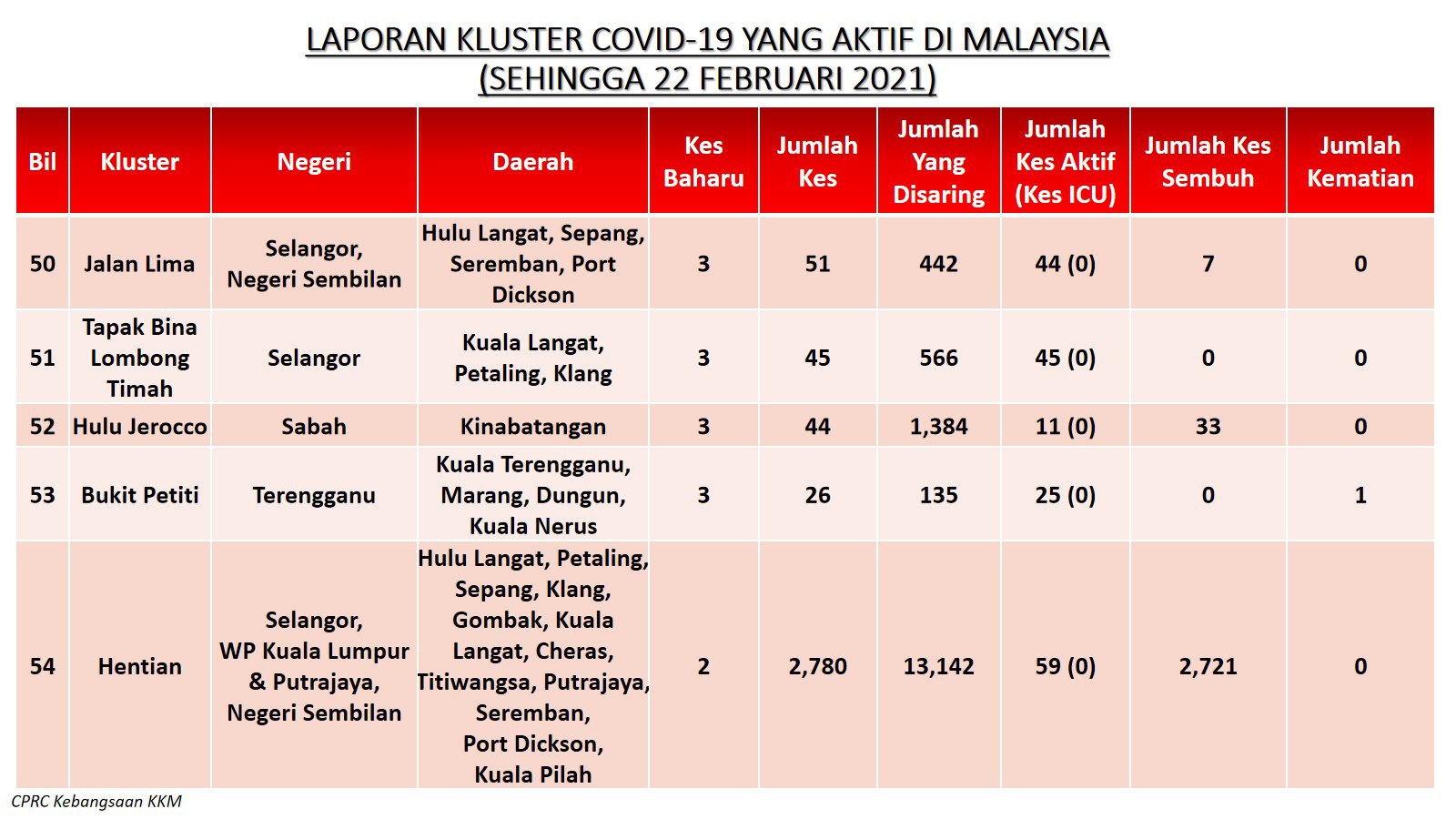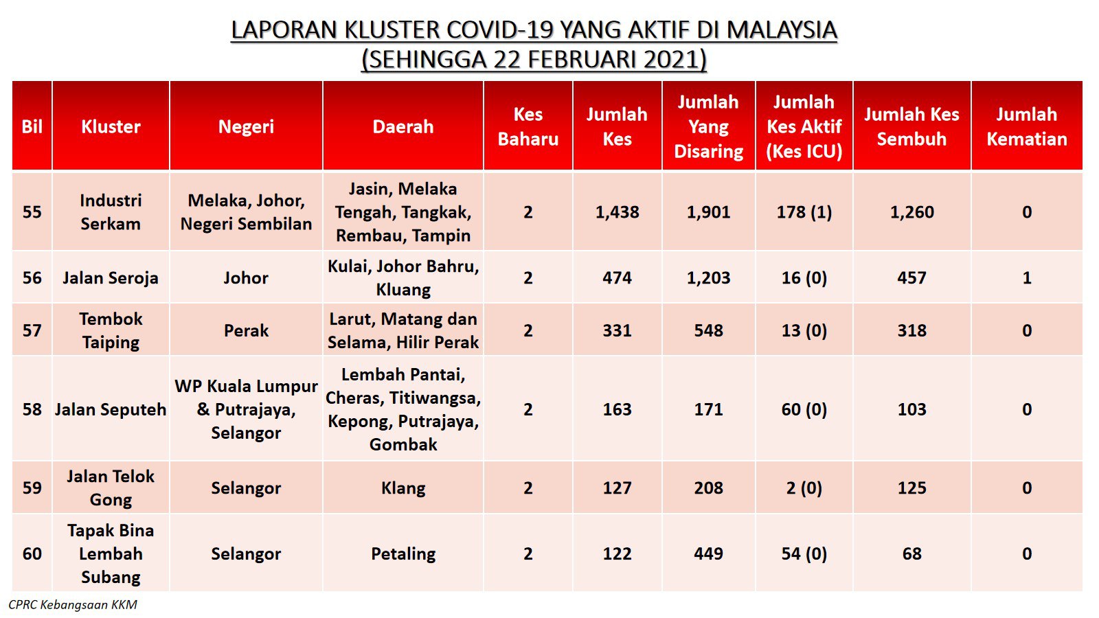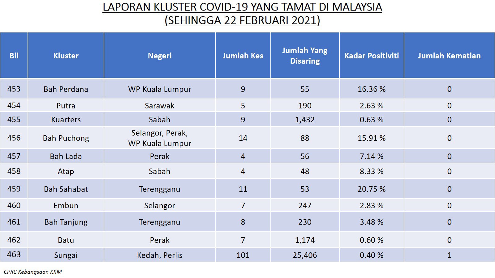 Ringkasan Status Terkini COVID-19 Di Malaysia, 22 Februari 2021