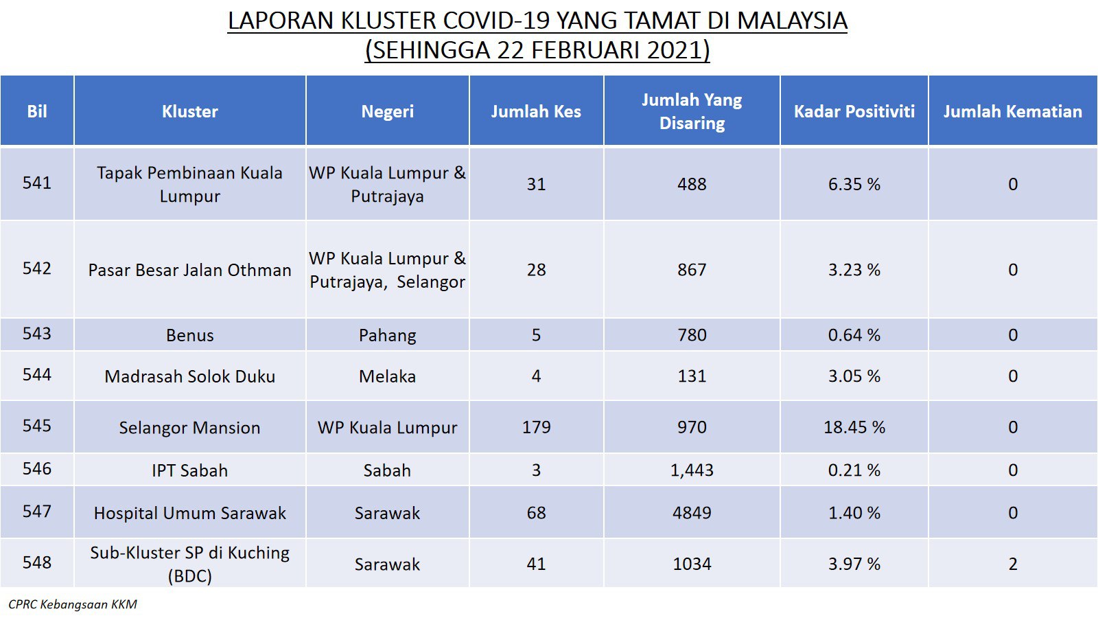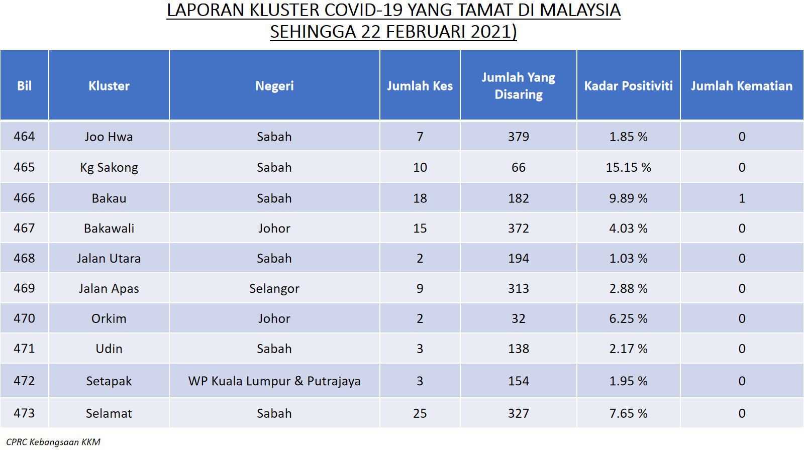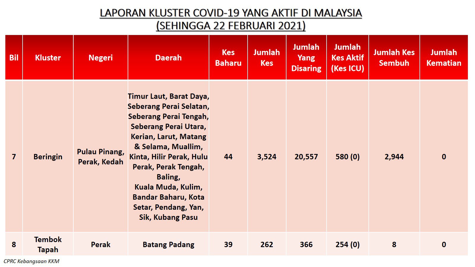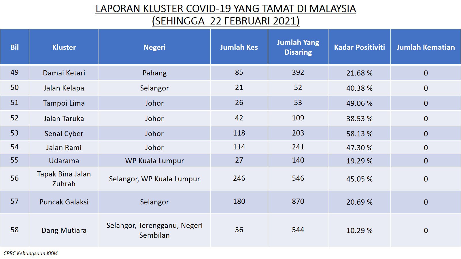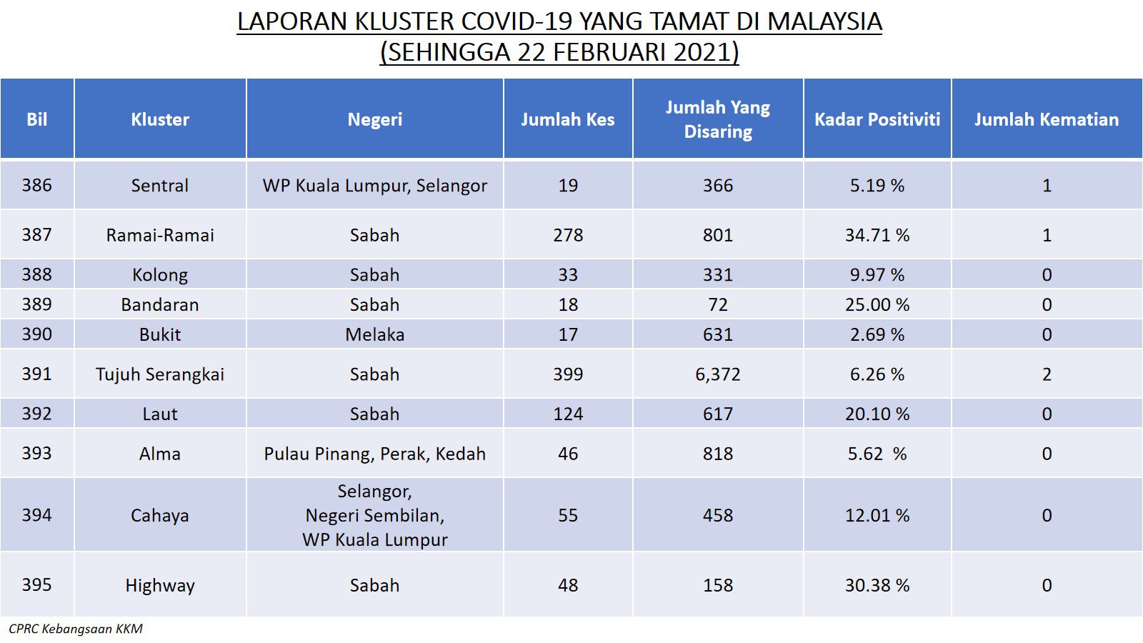 Ringkasan Status Terkini COVID-19 Di Malaysia, 22 Februari 2021