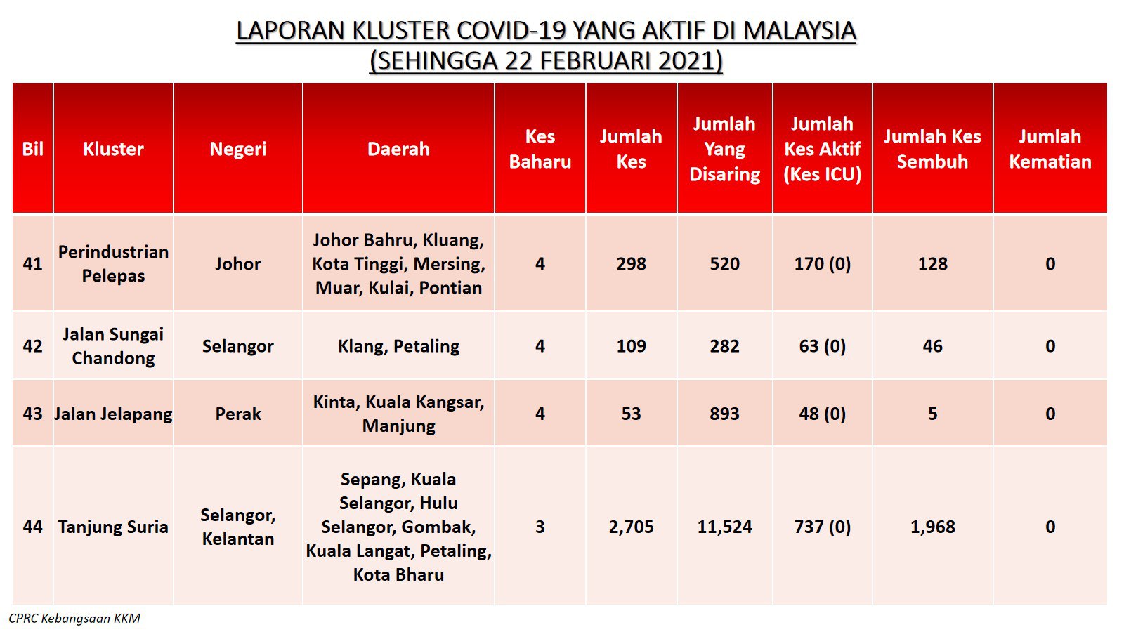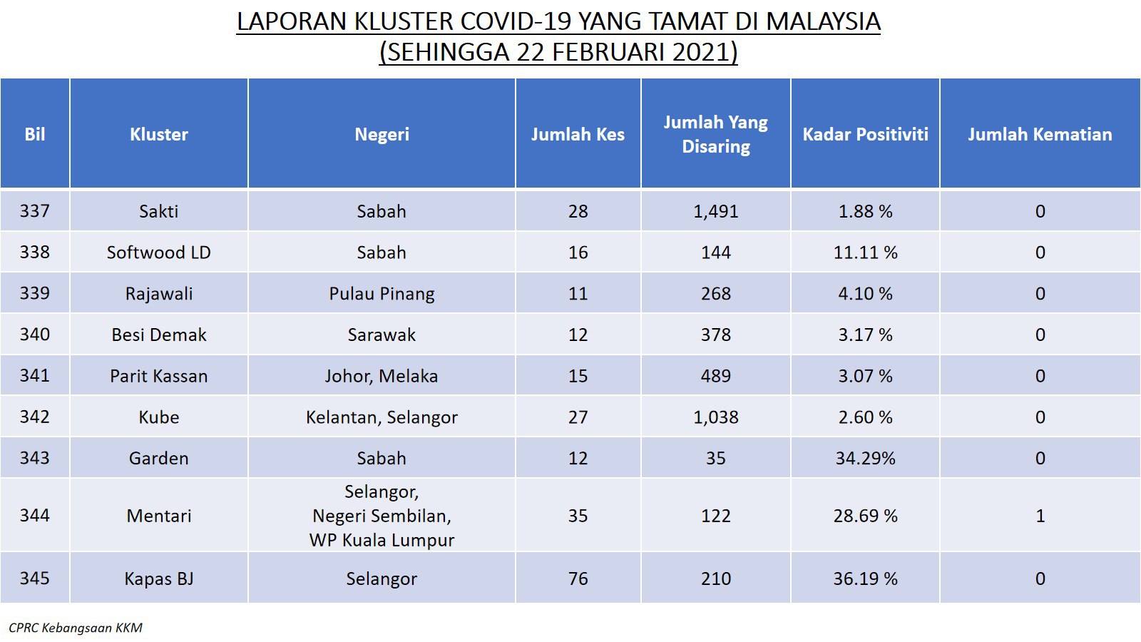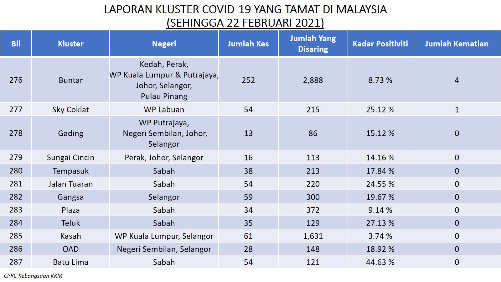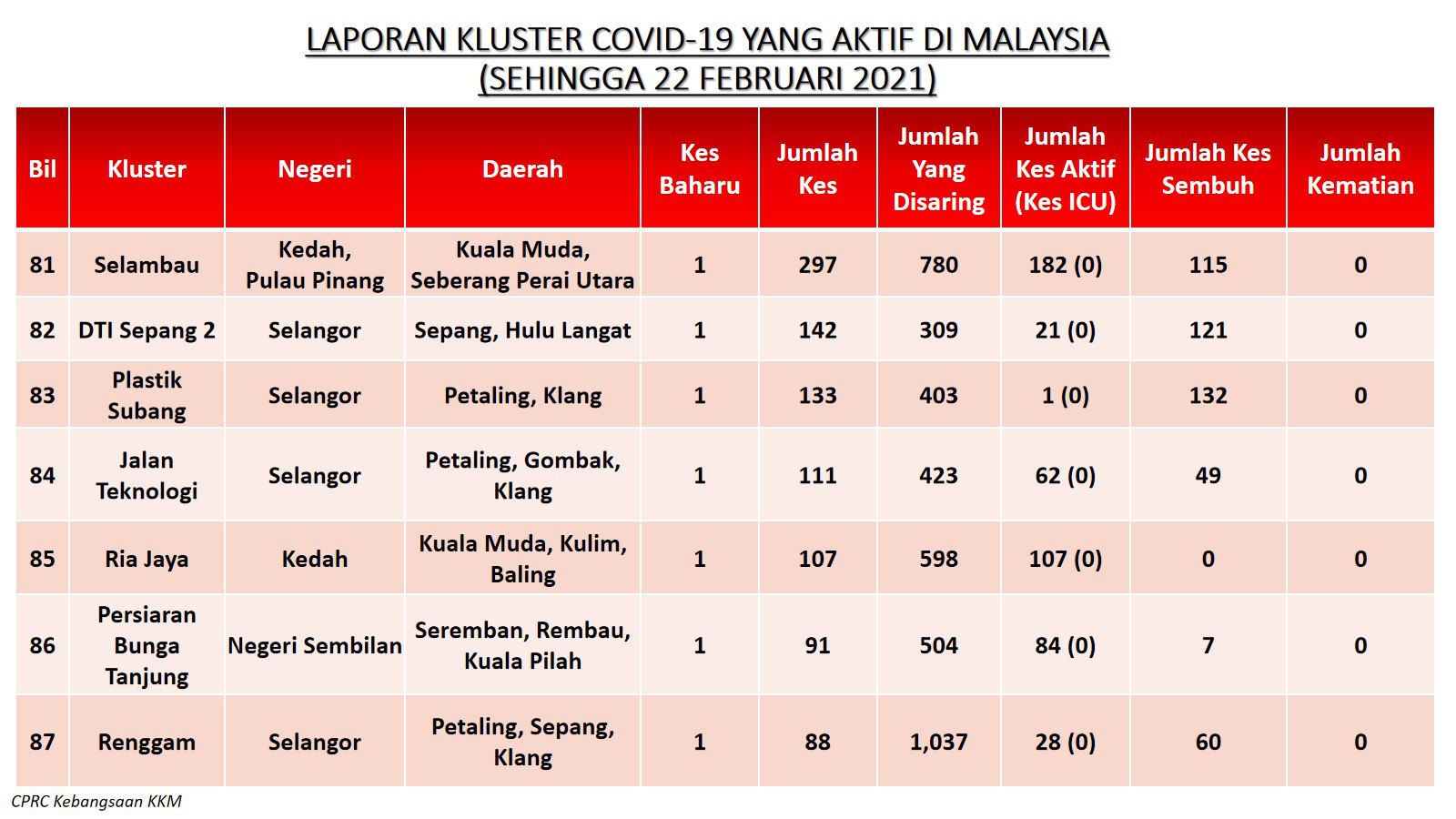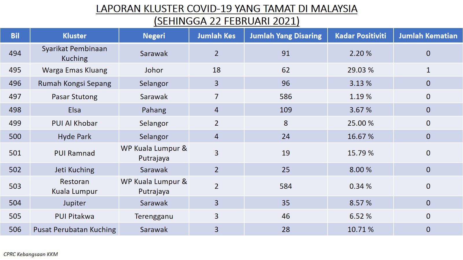 Ringkasan Status Terkini COVID-19 Di Malaysia, 22 Februari 2021