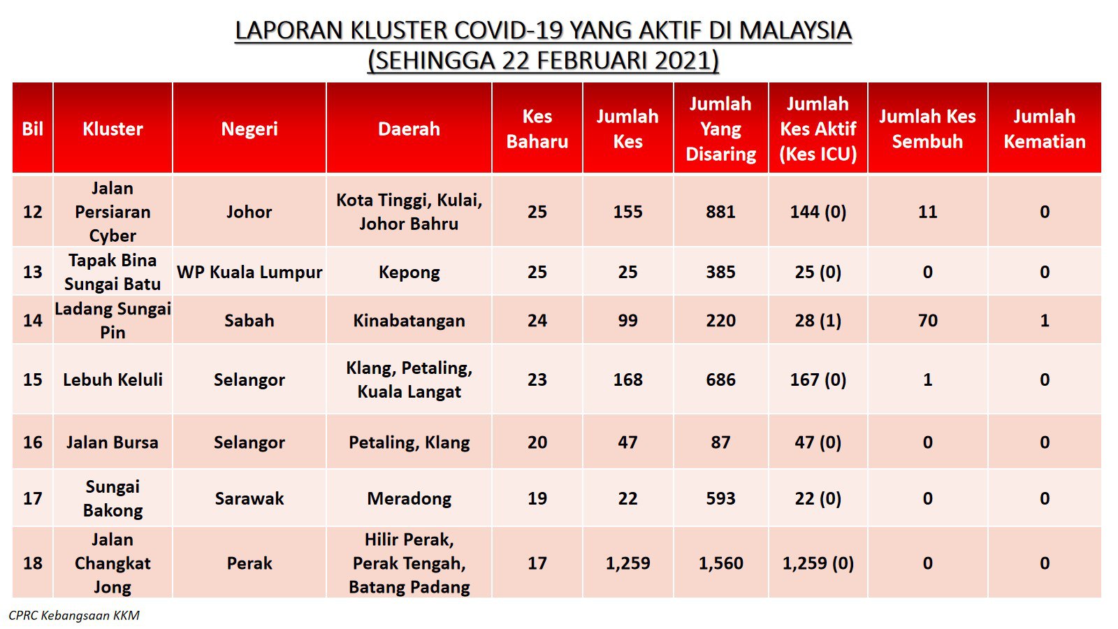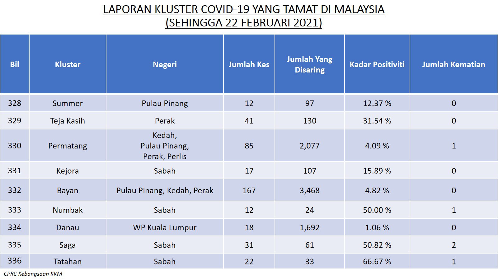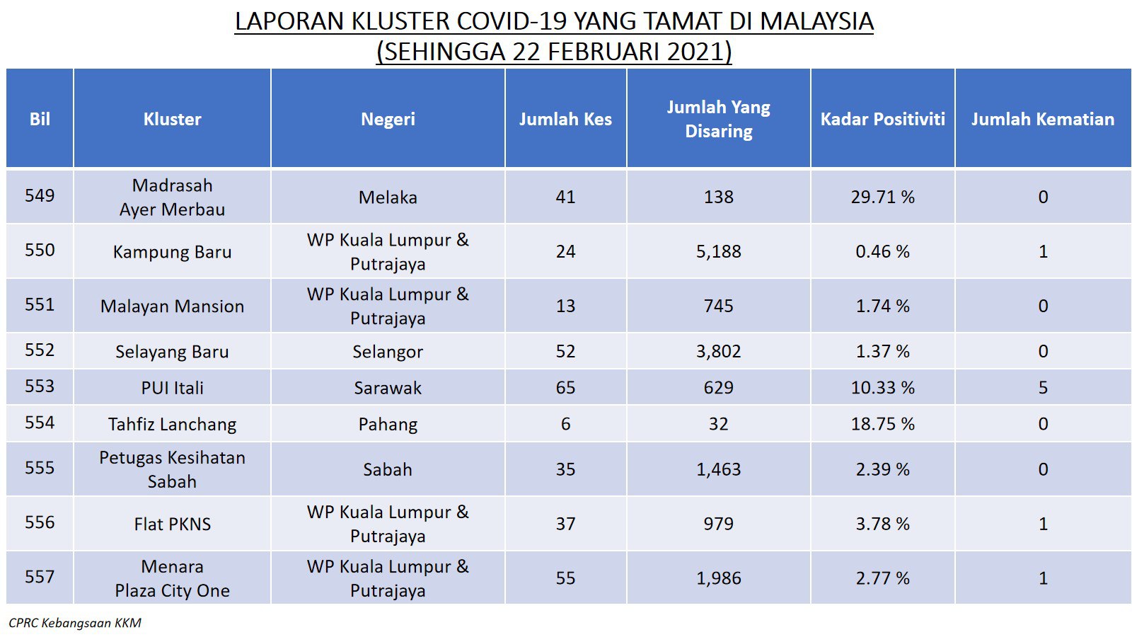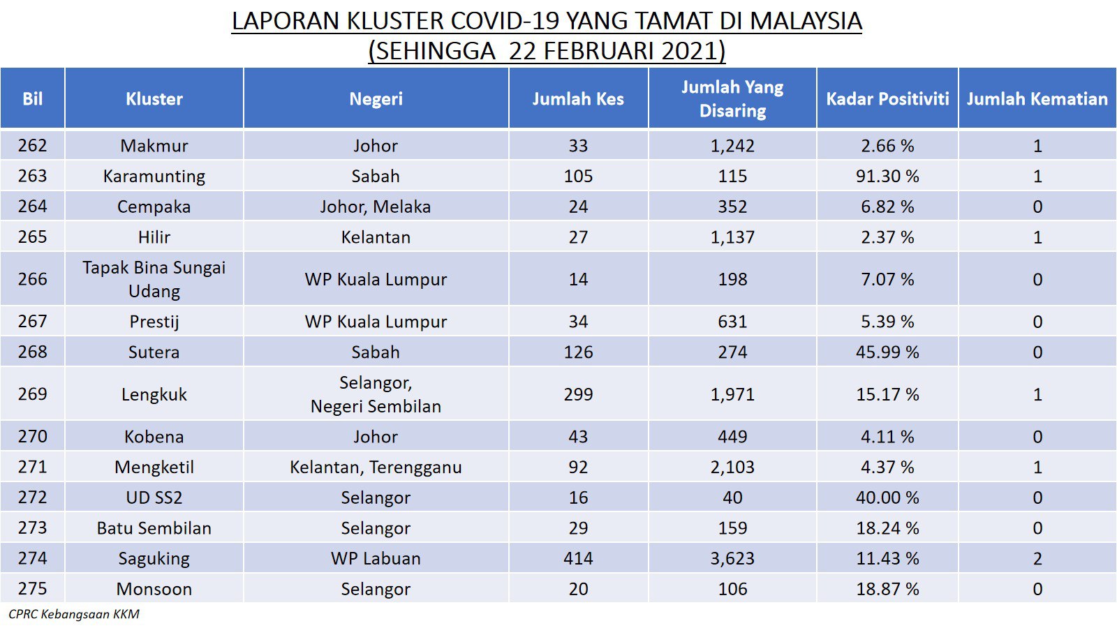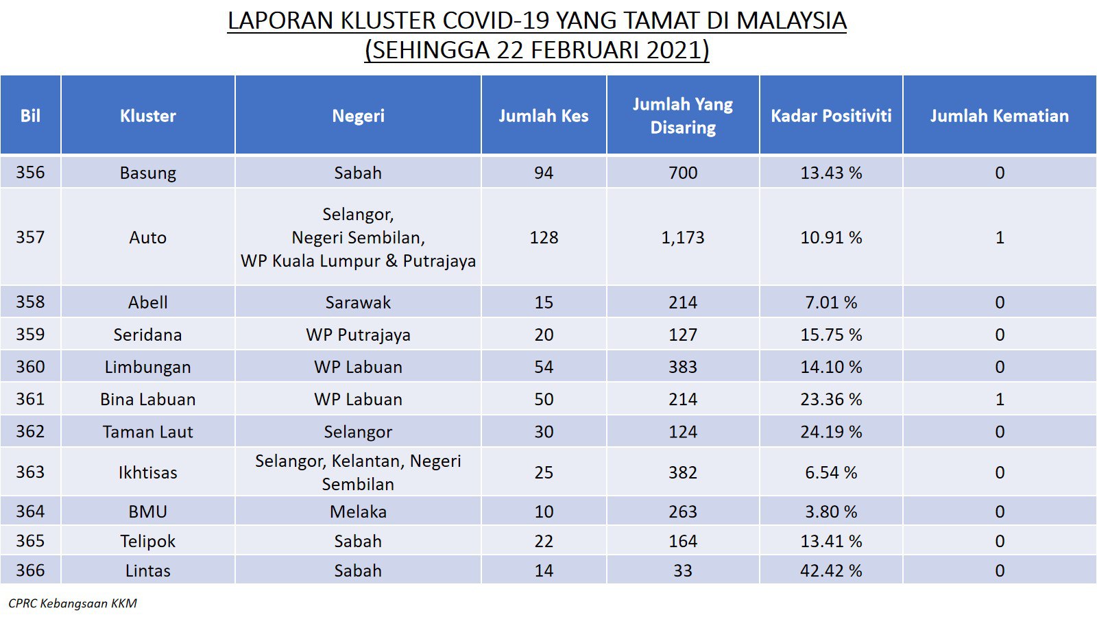 Ringkasan Status Terkini COVID-19 Di Malaysia, 22 Februari 2021