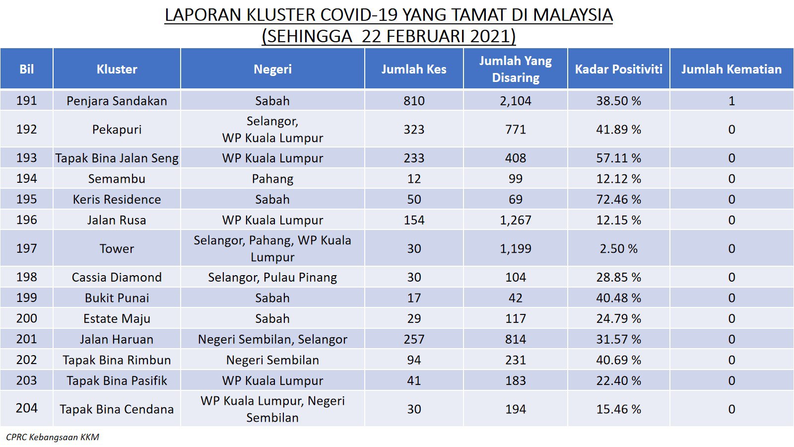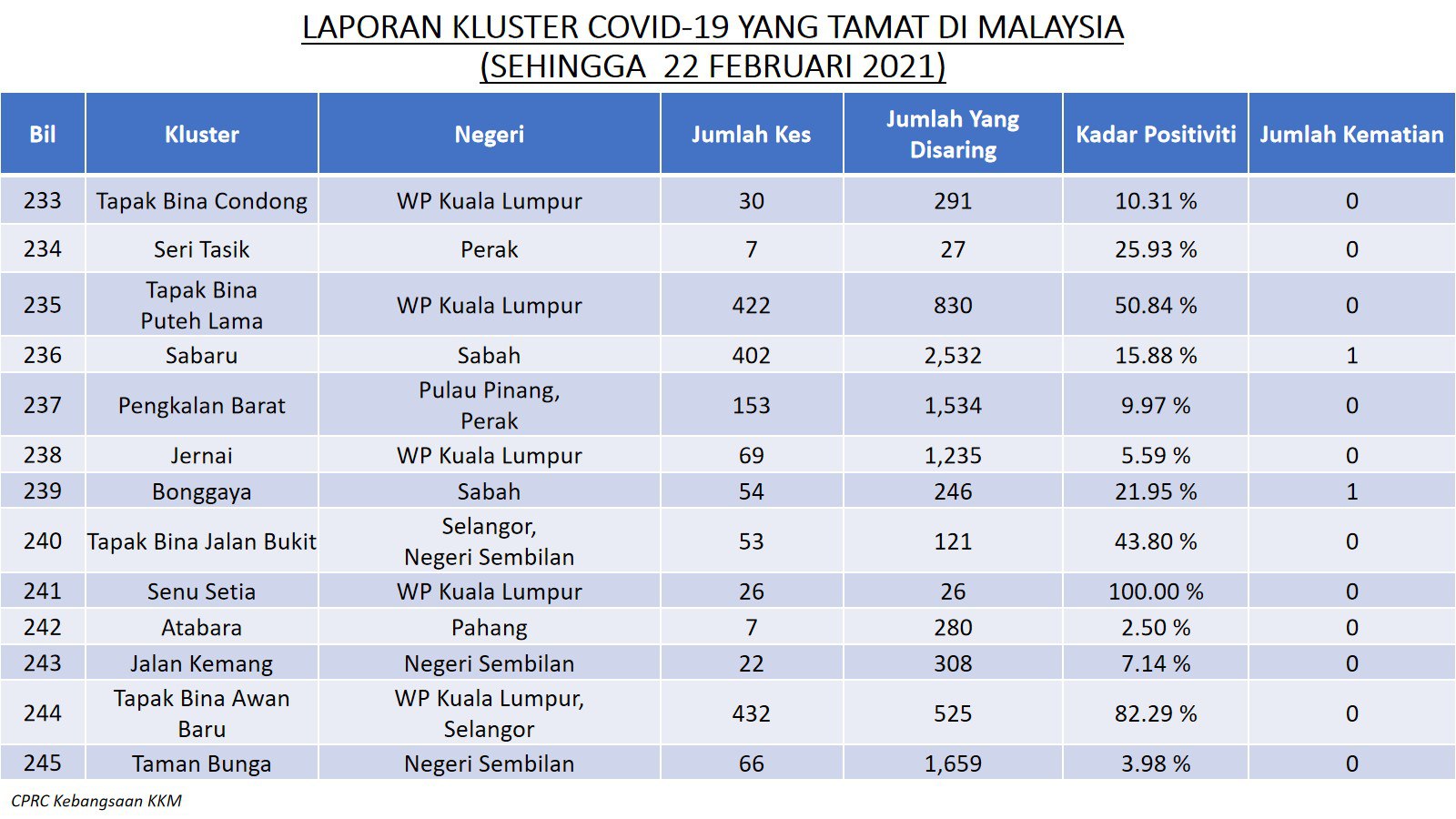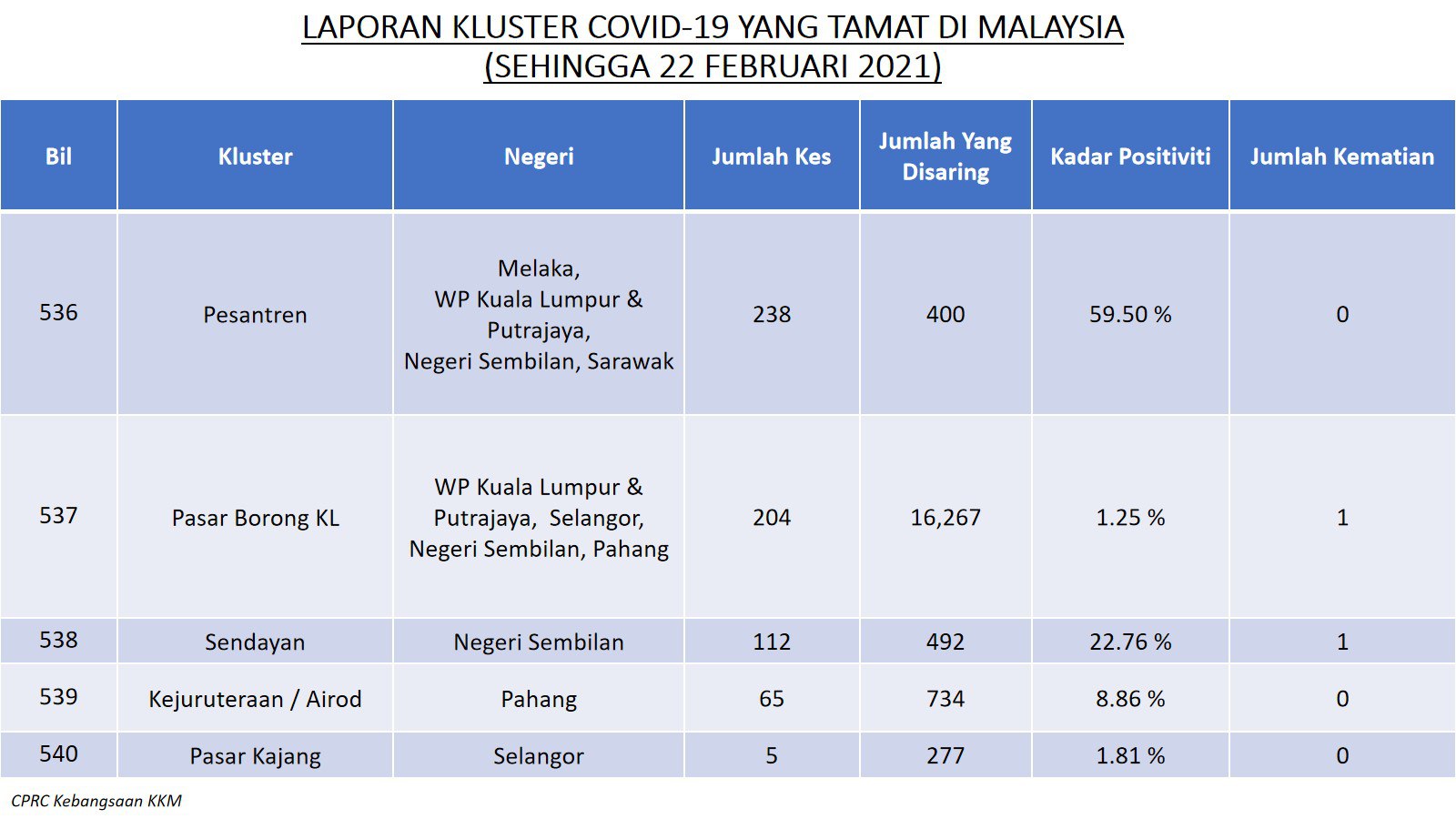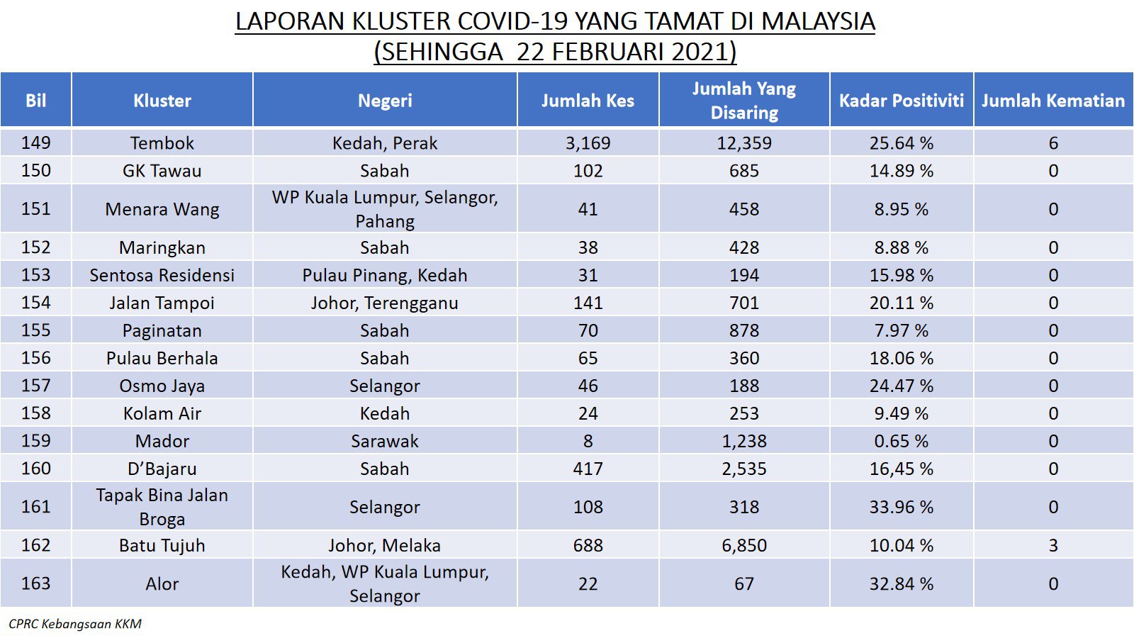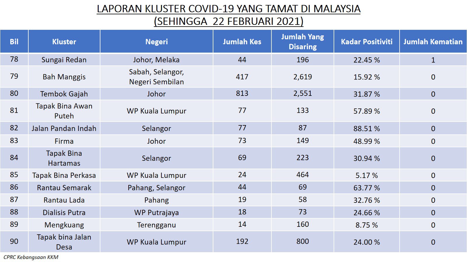 Ringkasan Status Terkini COVID-19 Di Malaysia, 22 Februari 2021