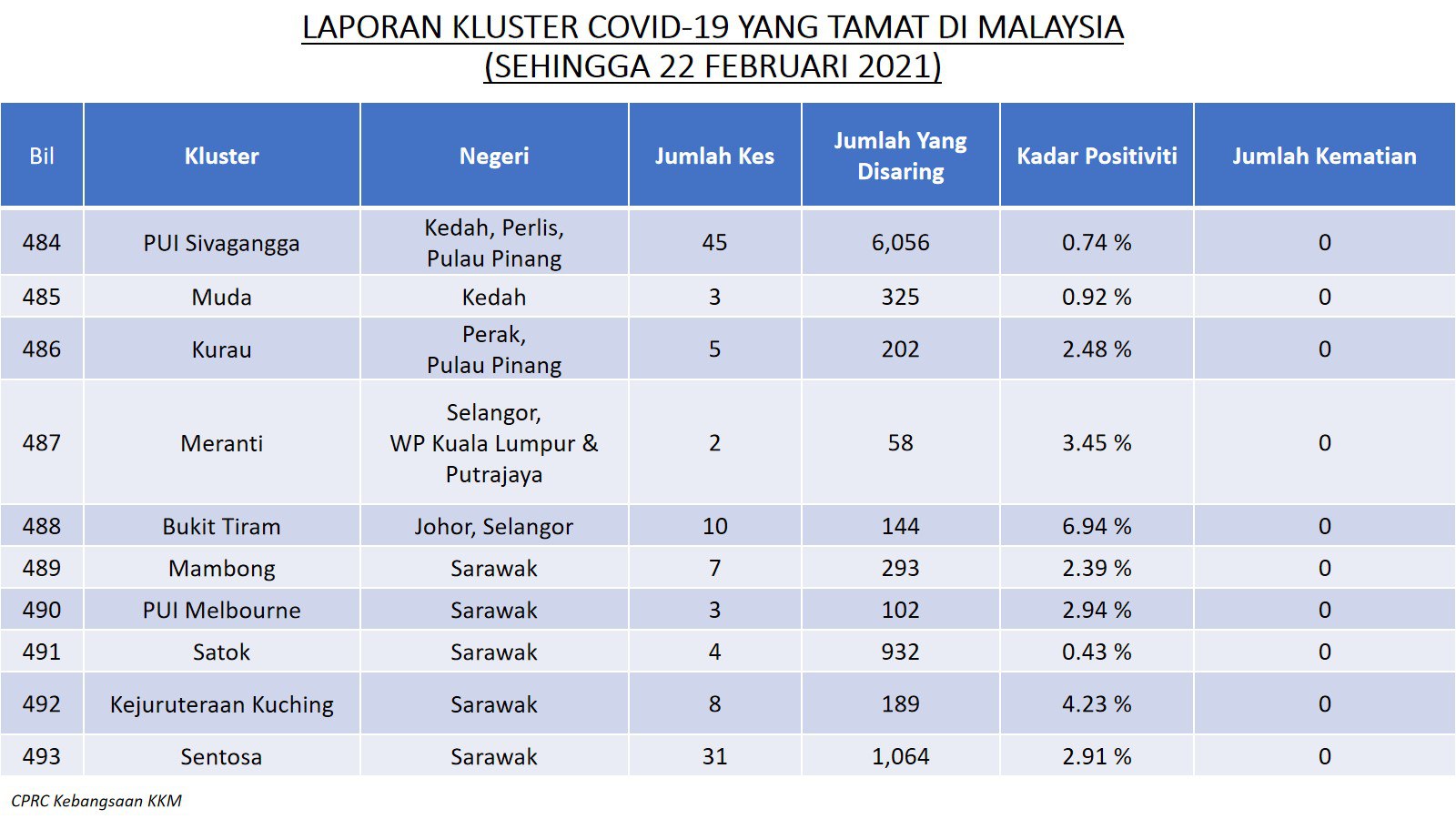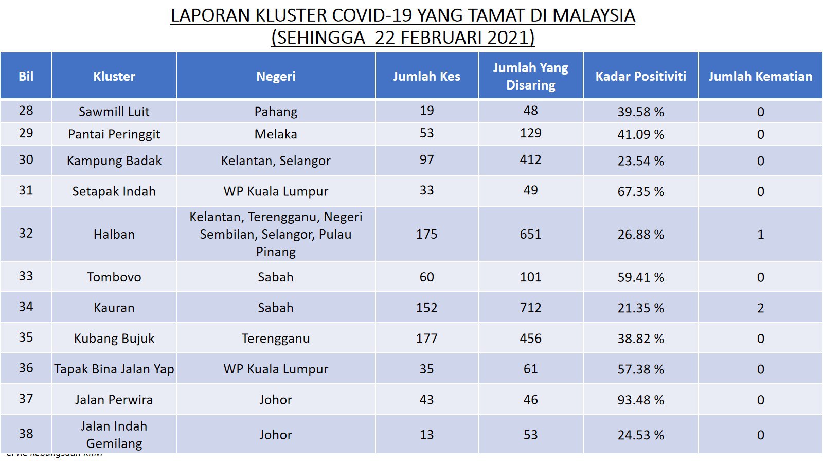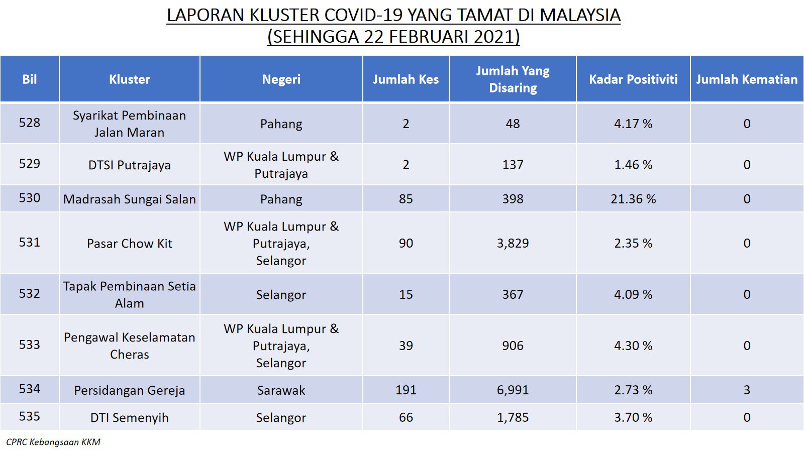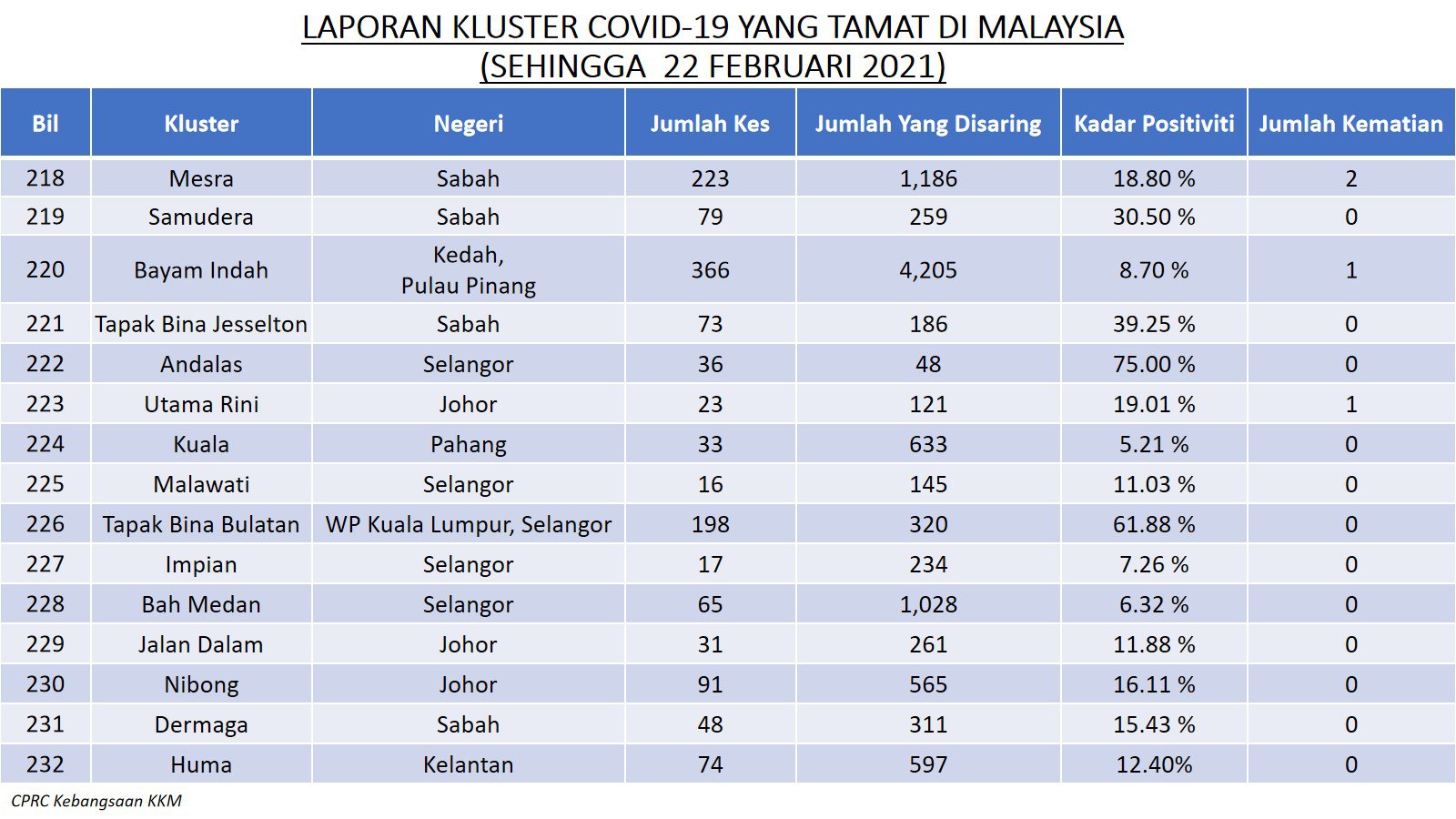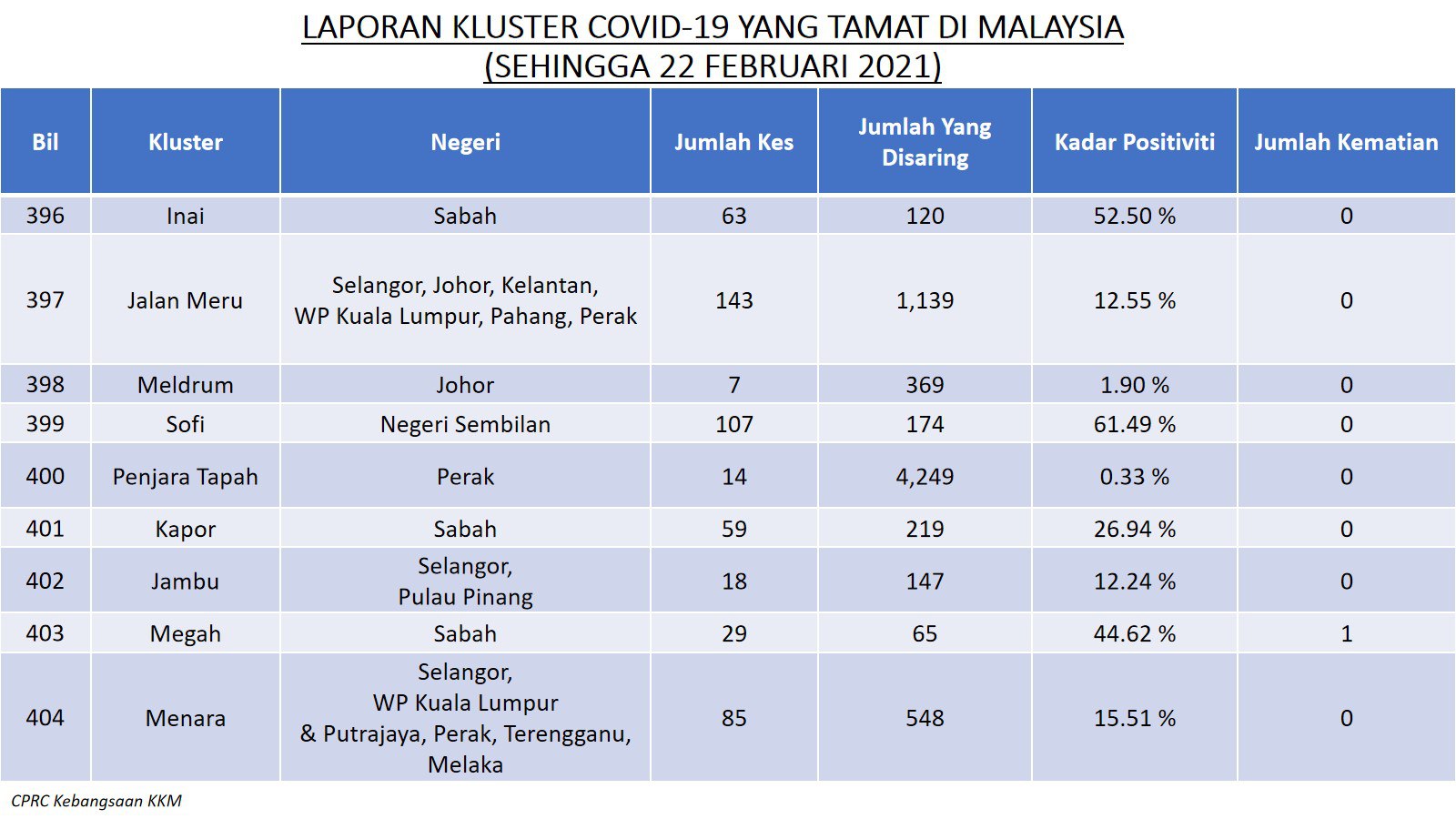 Ringkasan Status Terkini COVID-19 Di Malaysia, 22 Februari 2021
