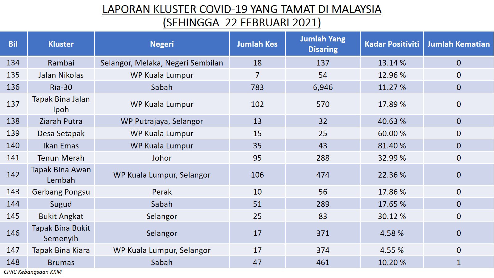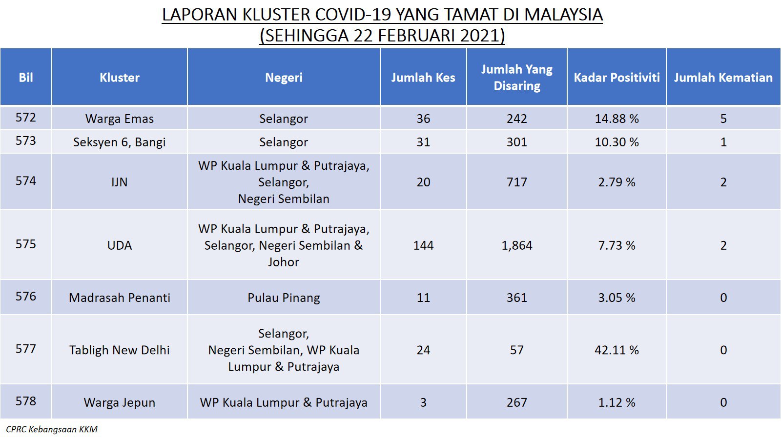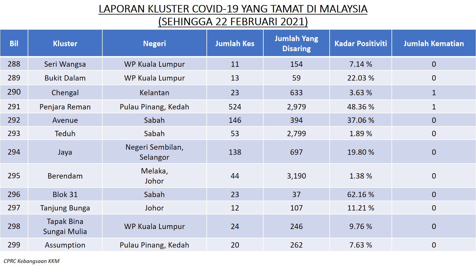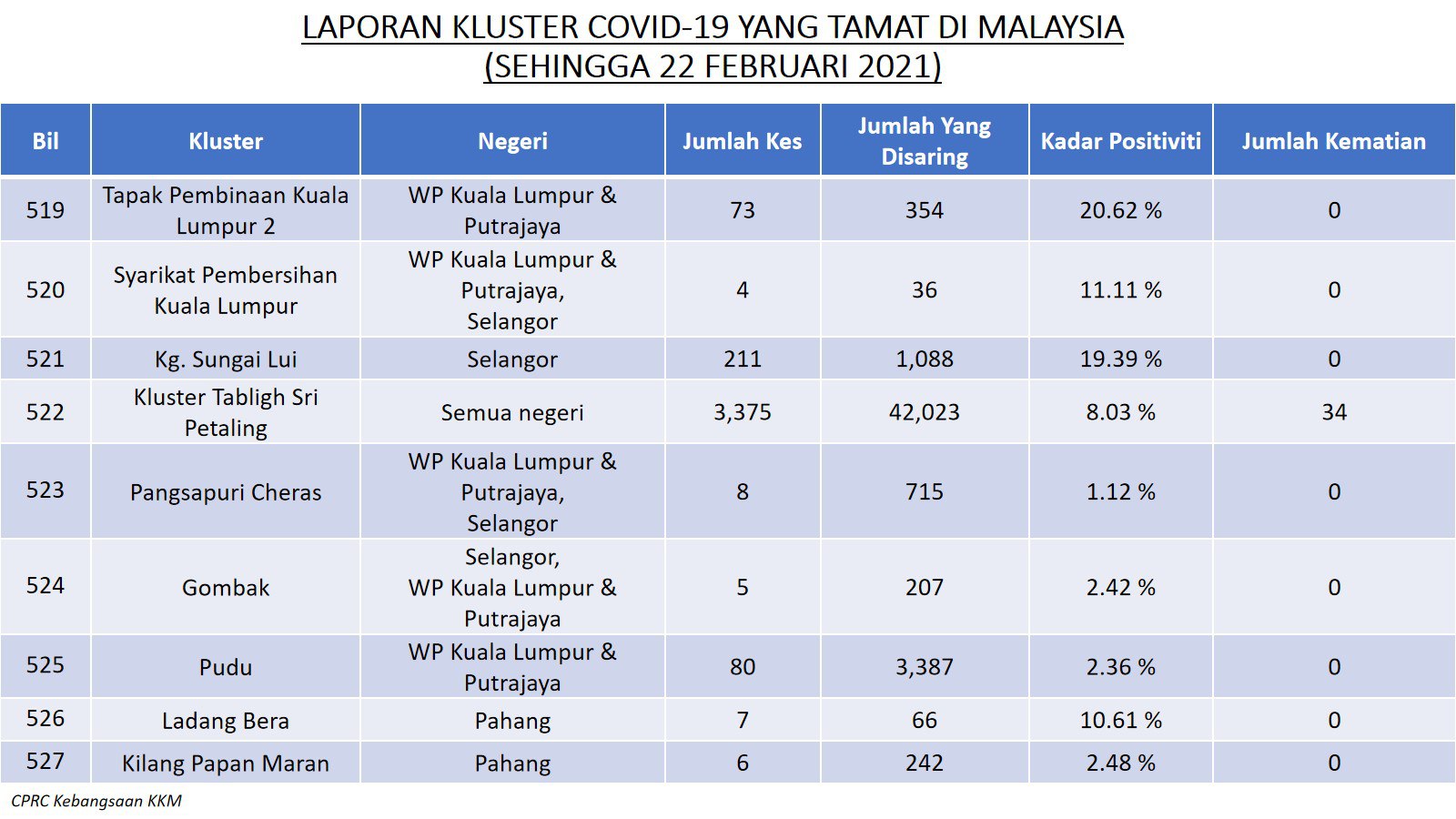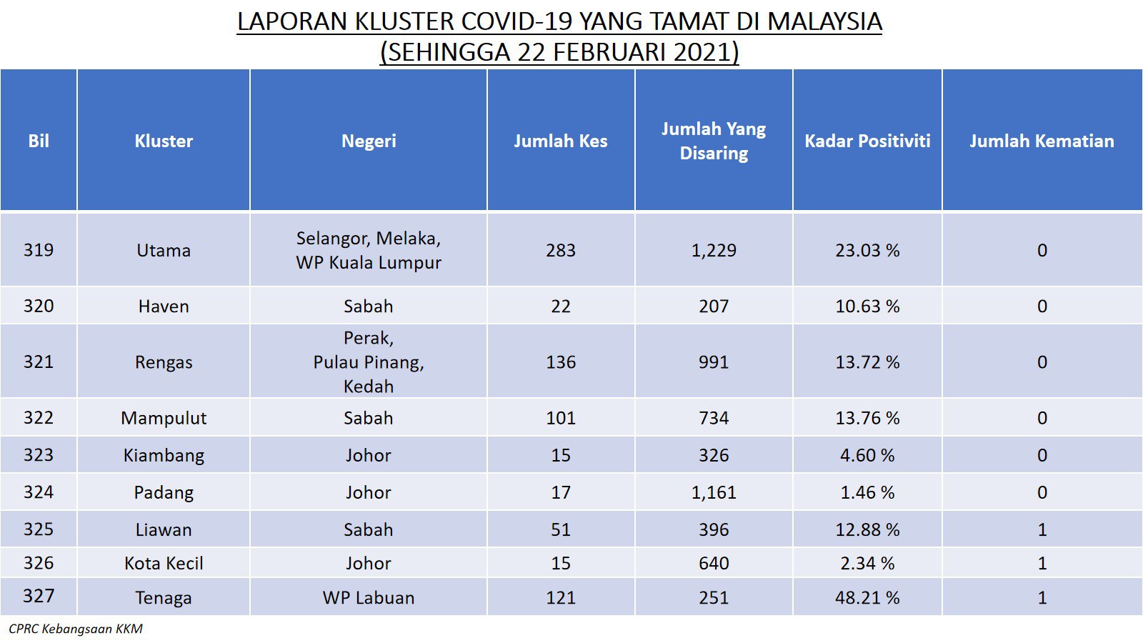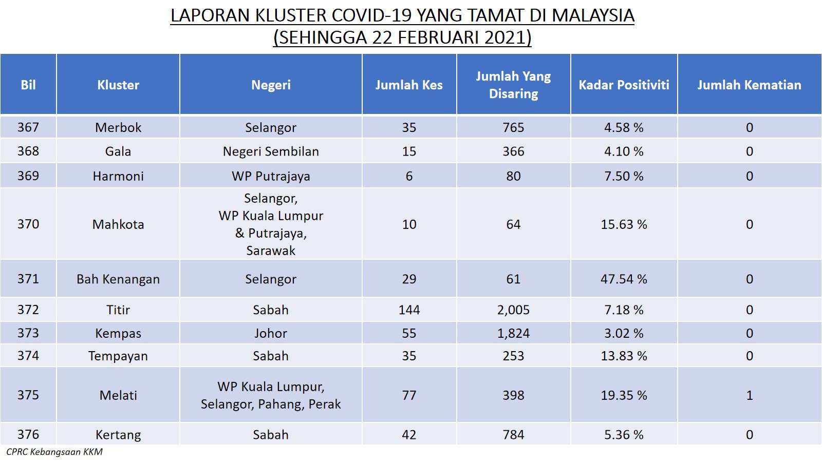 Ringkasan Status Terkini COVID-19 Di Malaysia, 22 Februari 2021