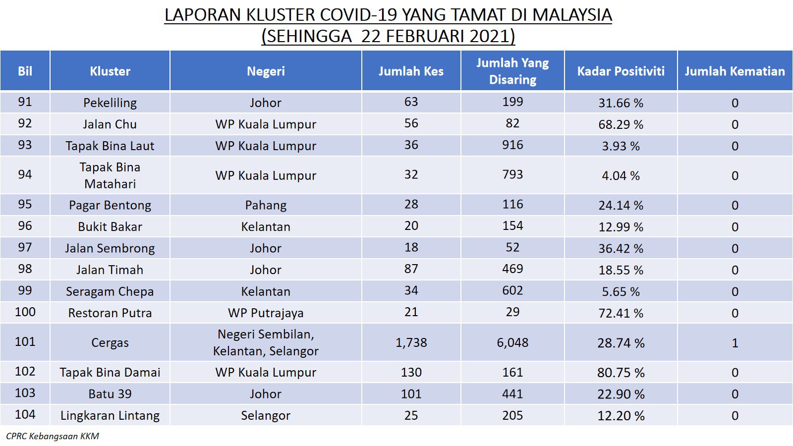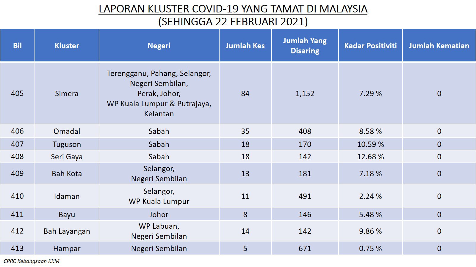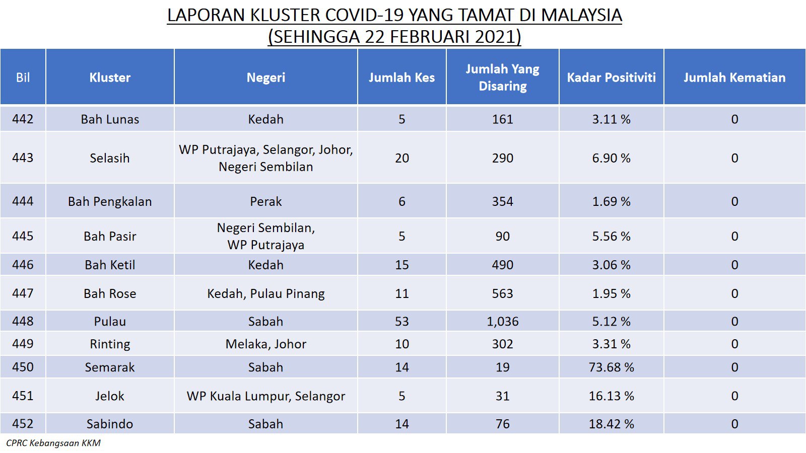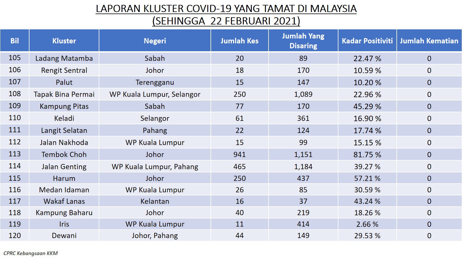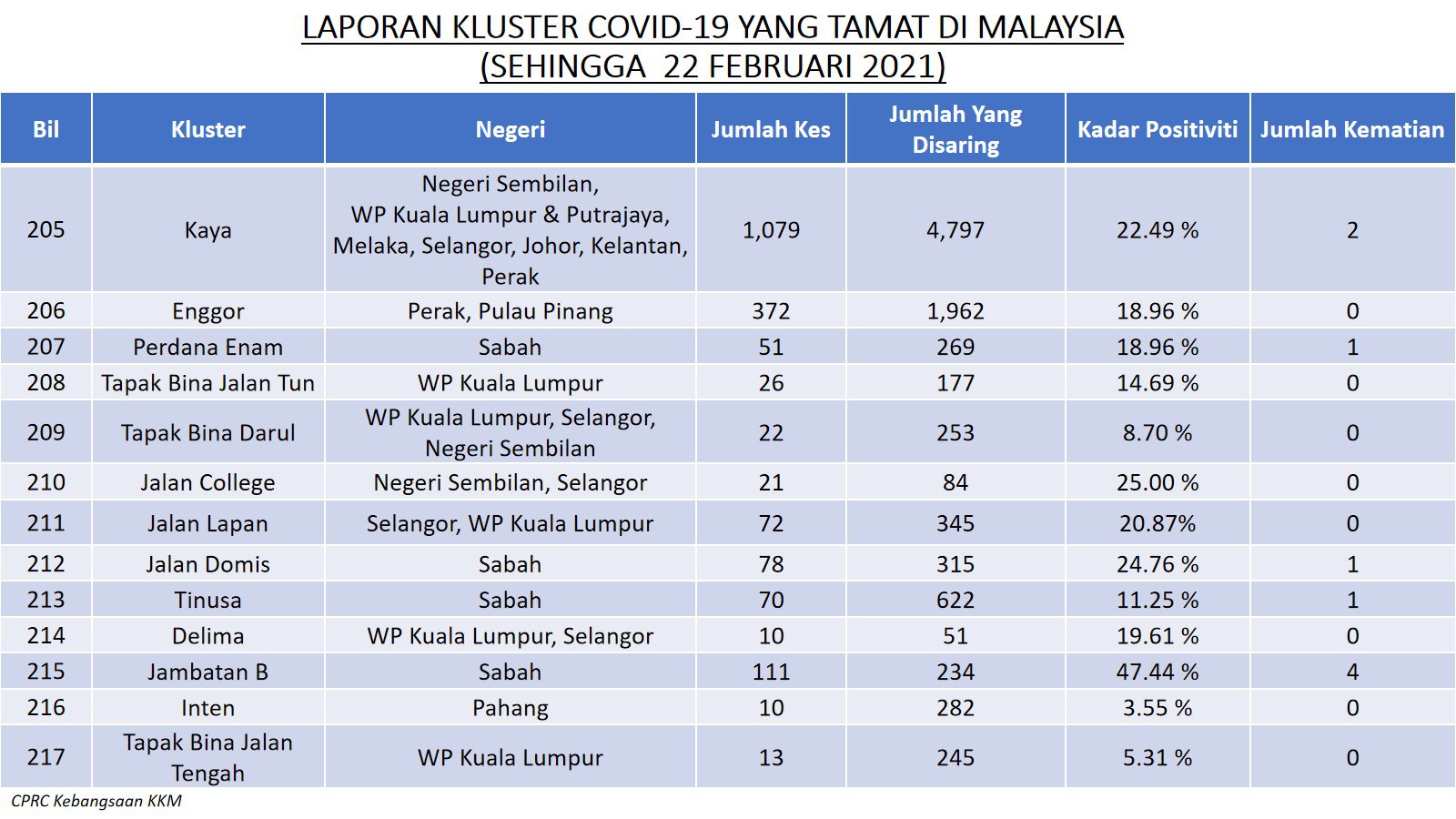 Ringkasan Status Terkini COVID-19 Di Malaysia, 22 Februari 2021
