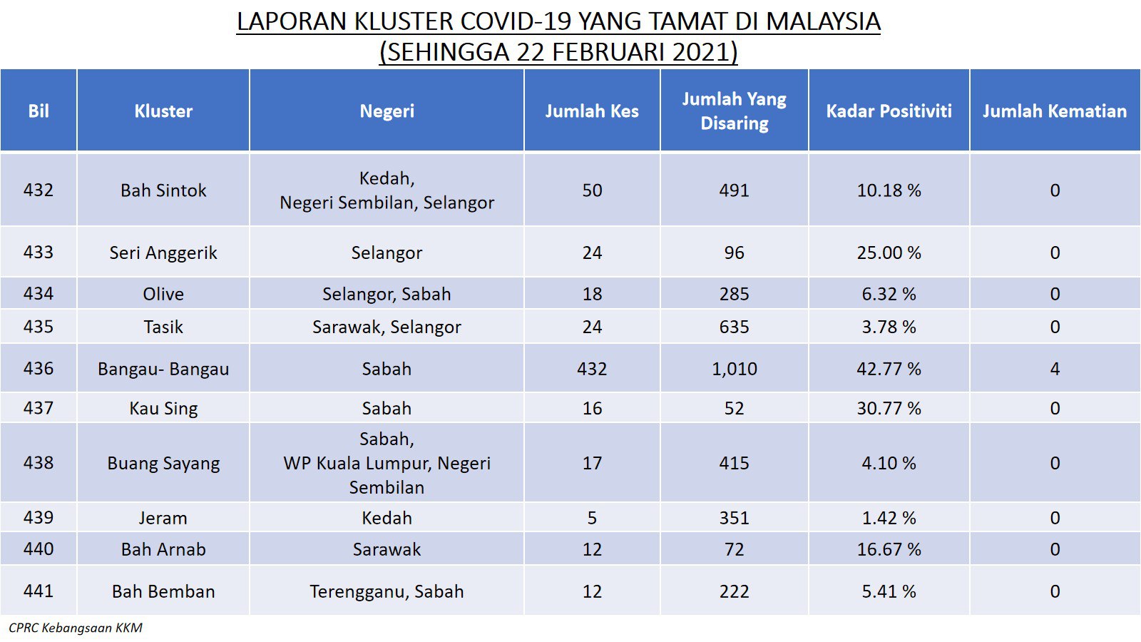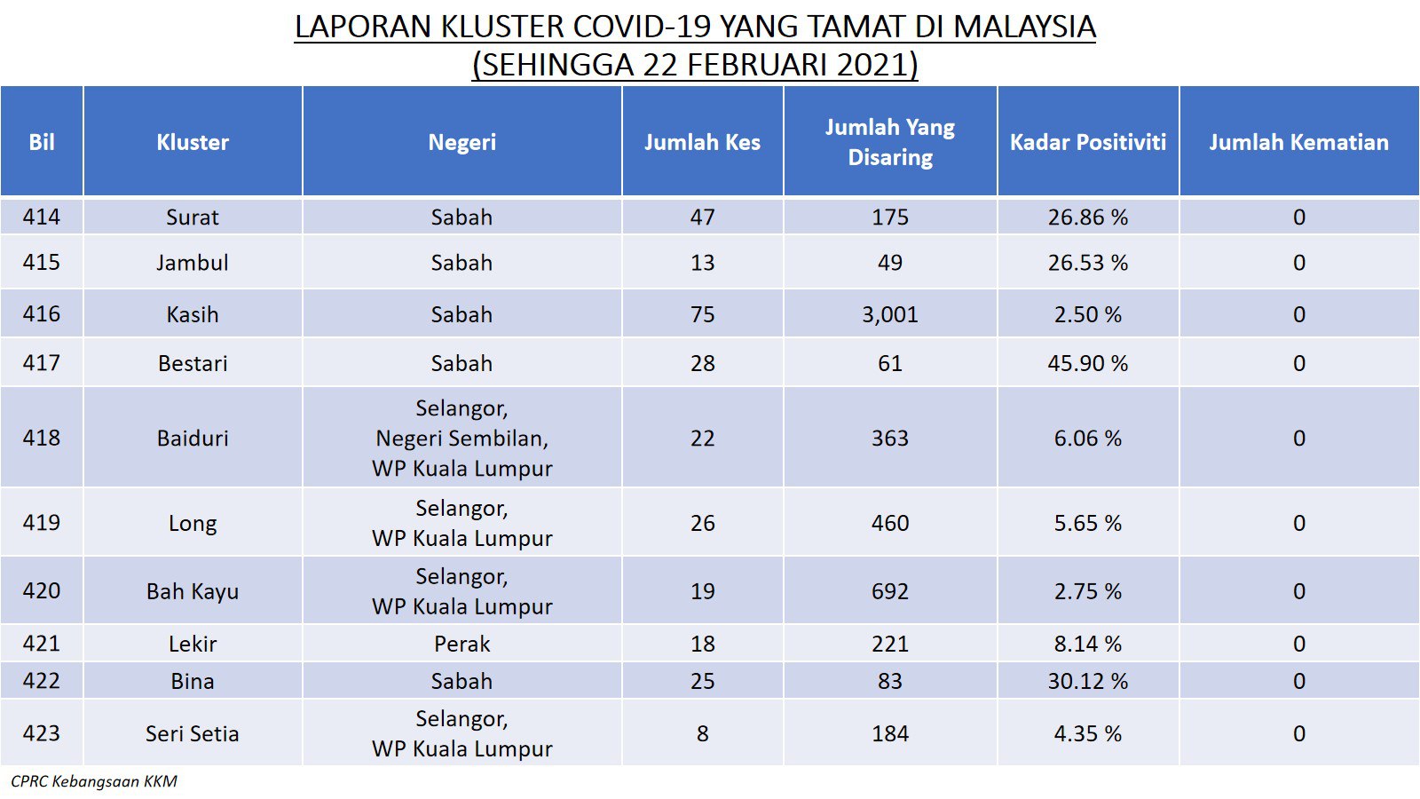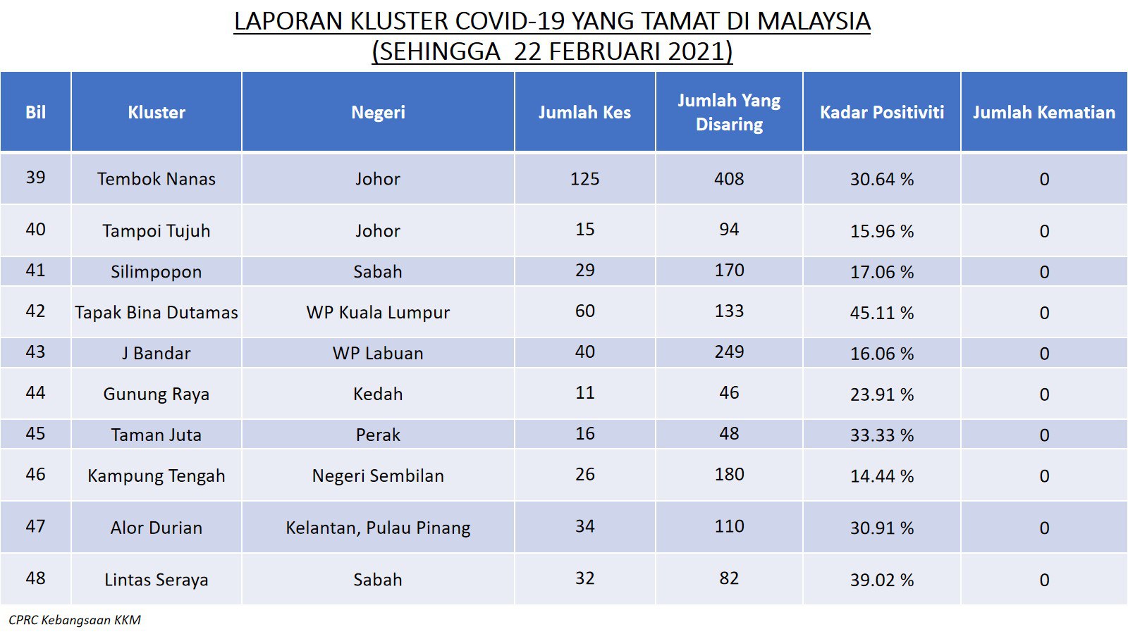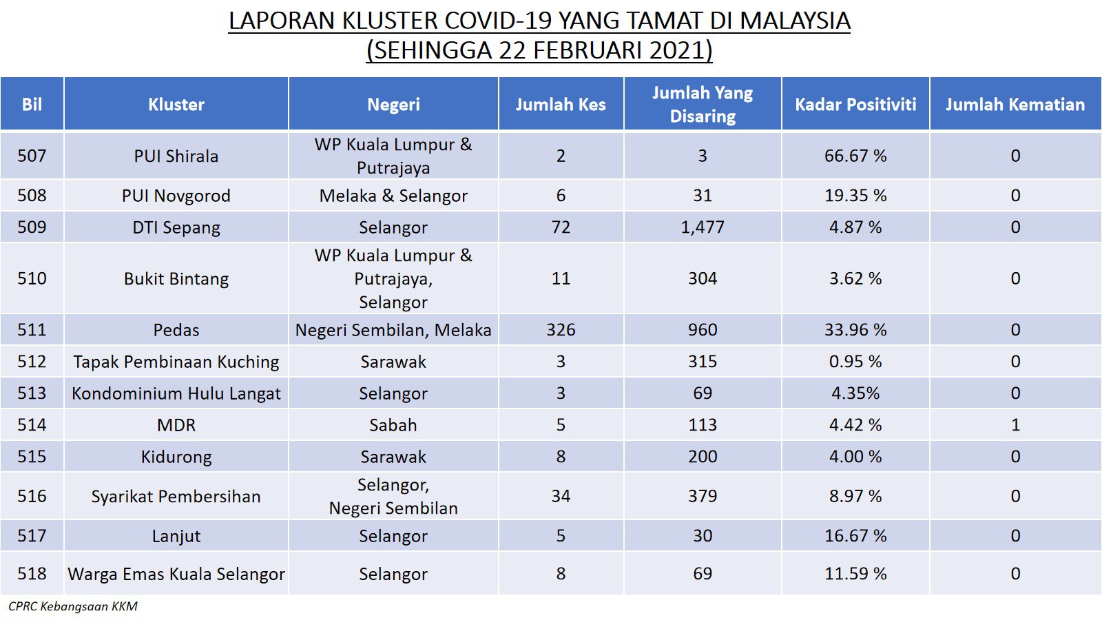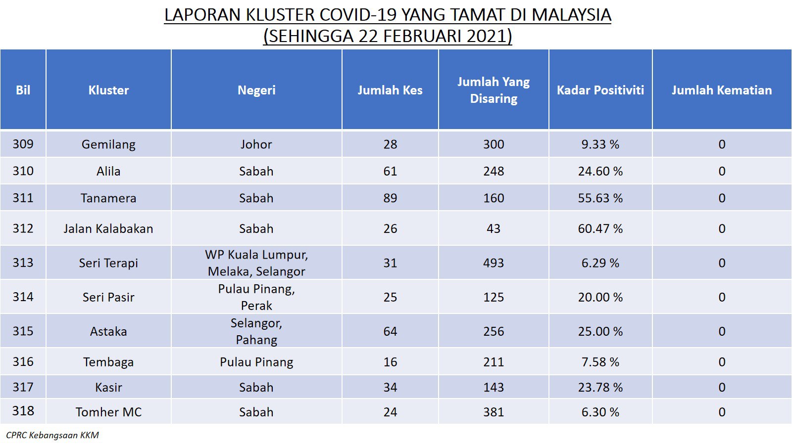 Ringkasan Status Terkini COVID-19 Di Malaysia, 22 Februari 2021