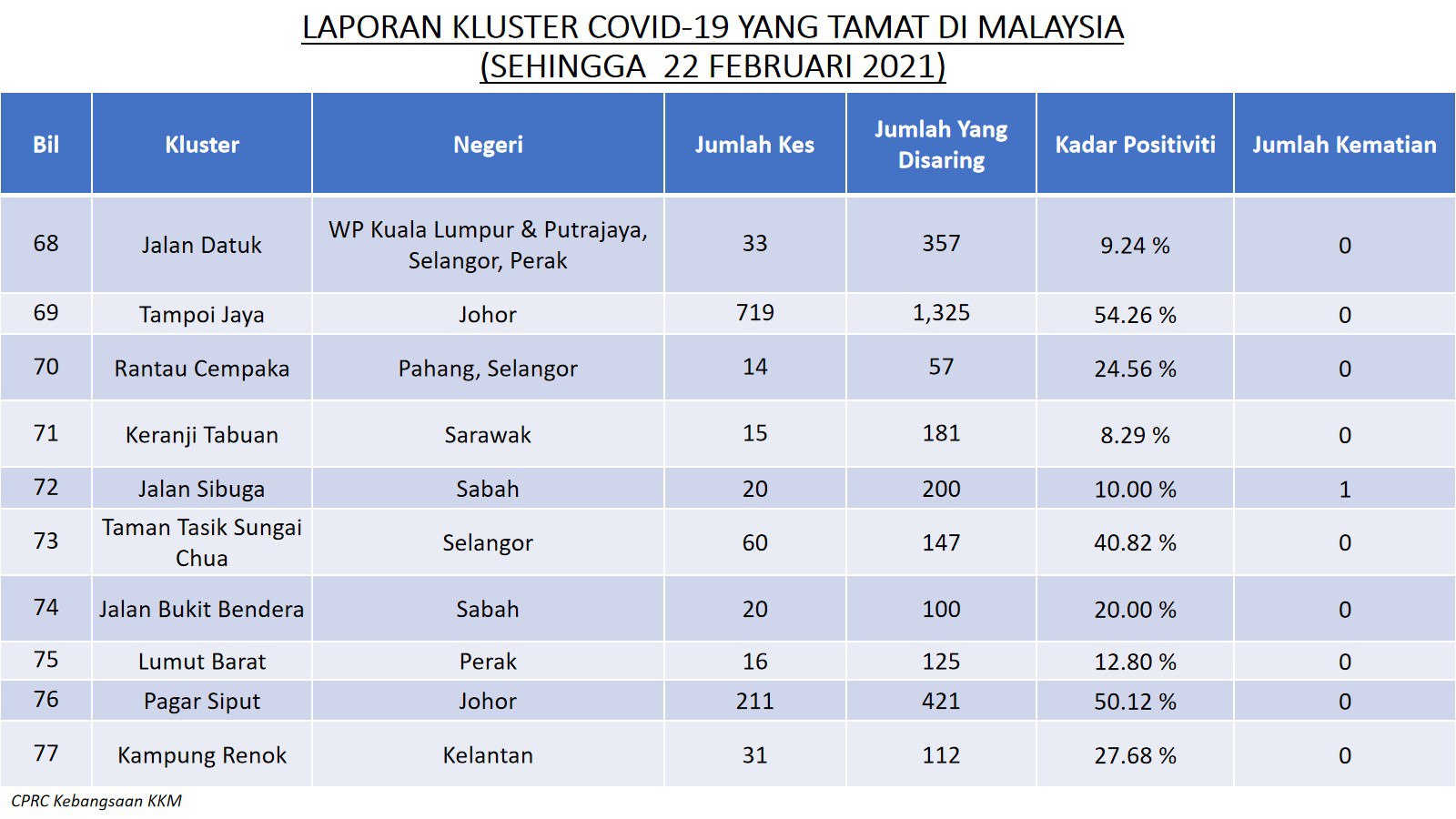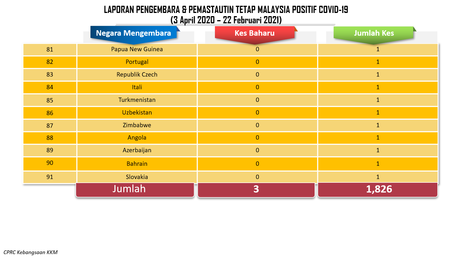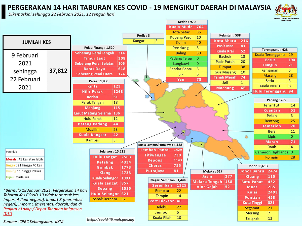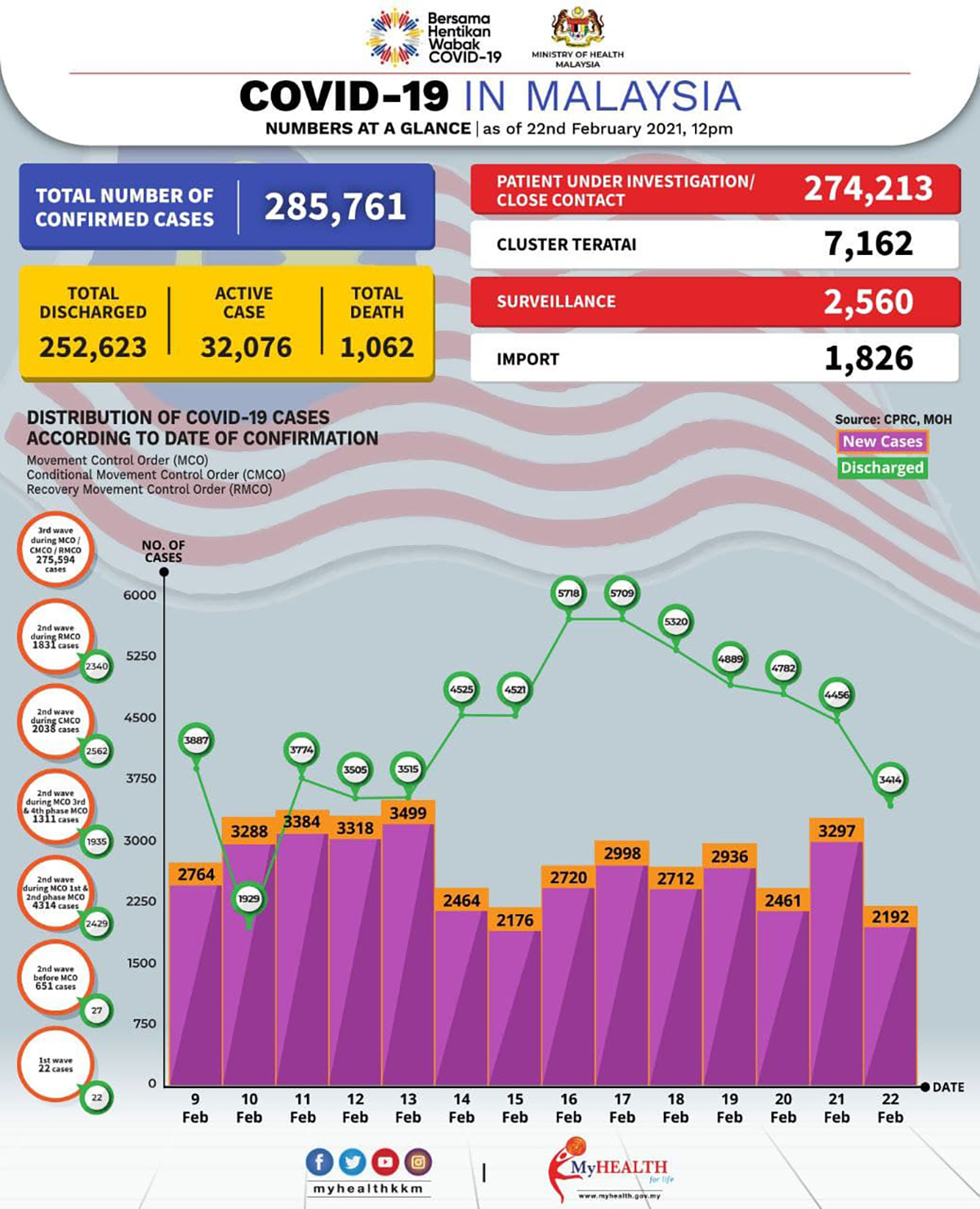 Situasi Terkini COVID-19 di Malaysia 22 Februari 2021