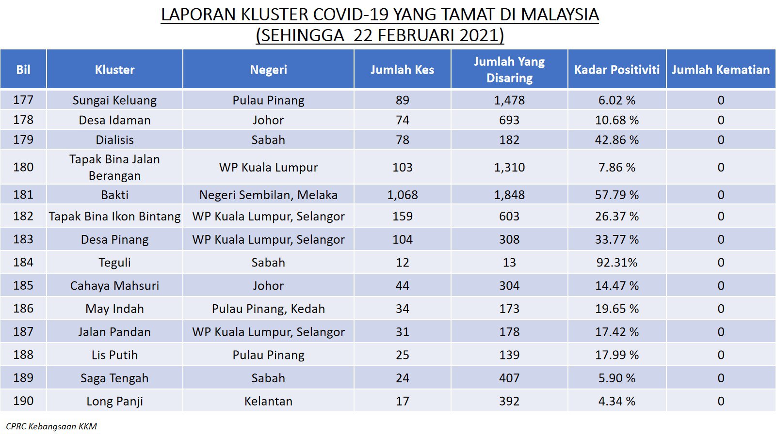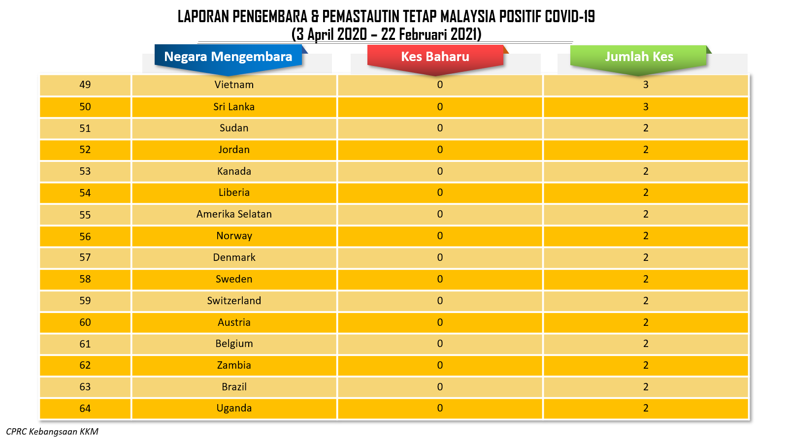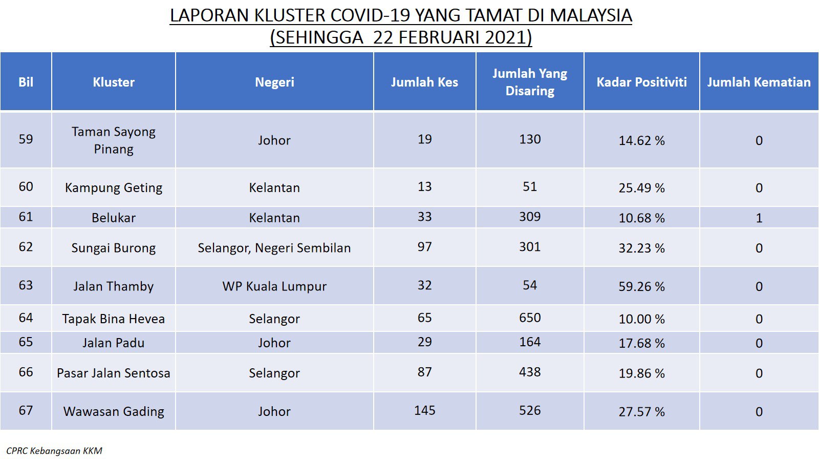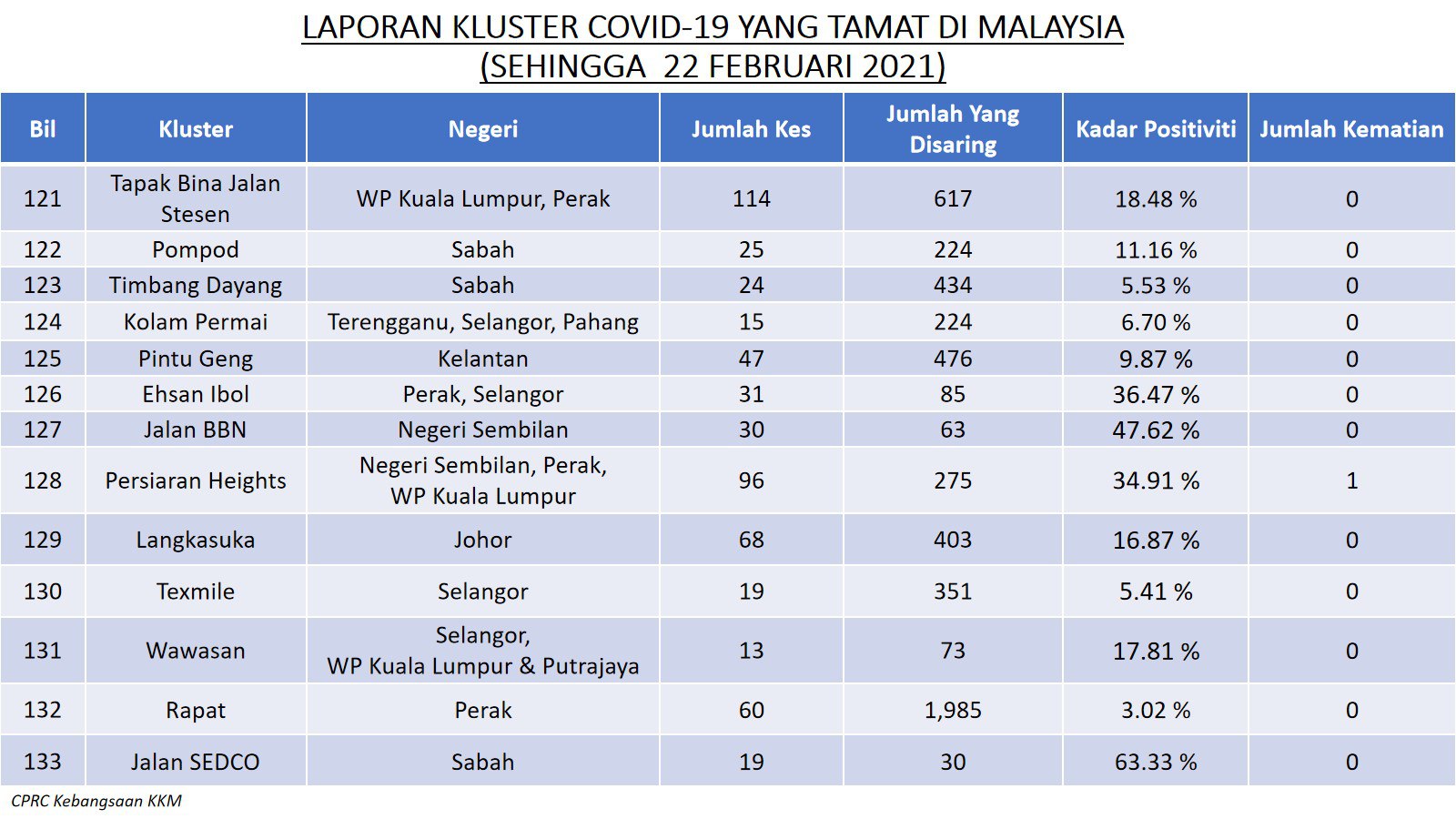 Situasi Terkini COVID-19 di Malaysia 22 Februari 2021