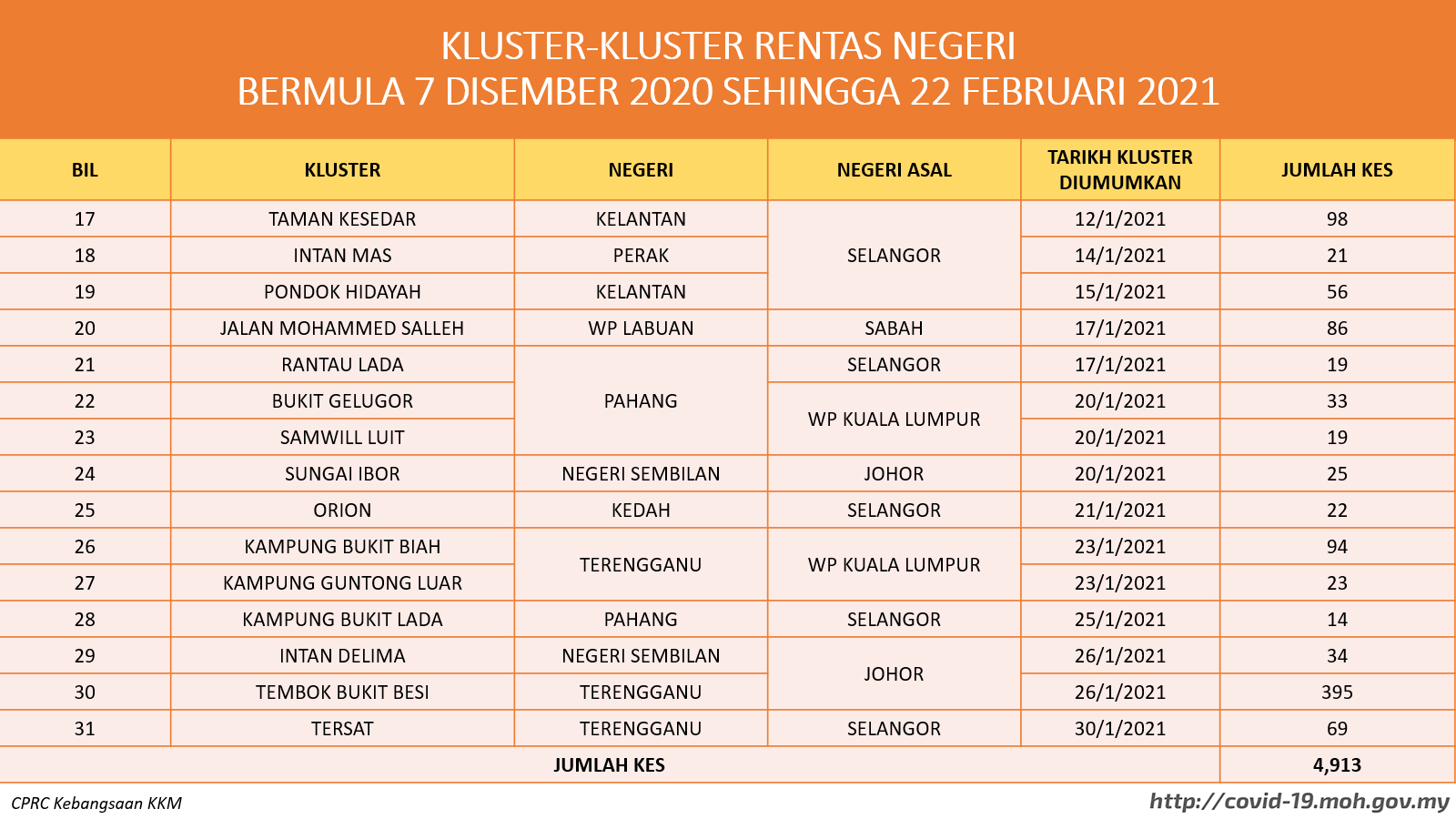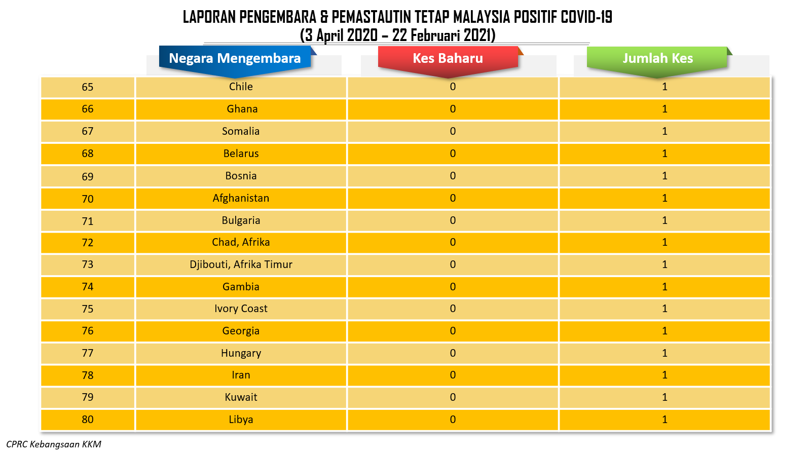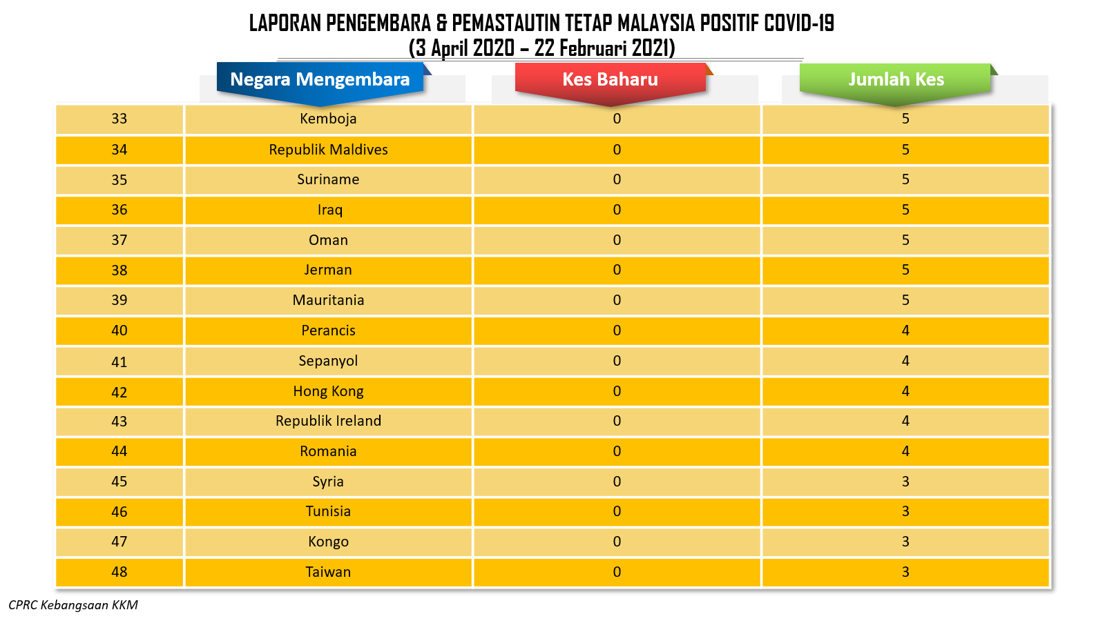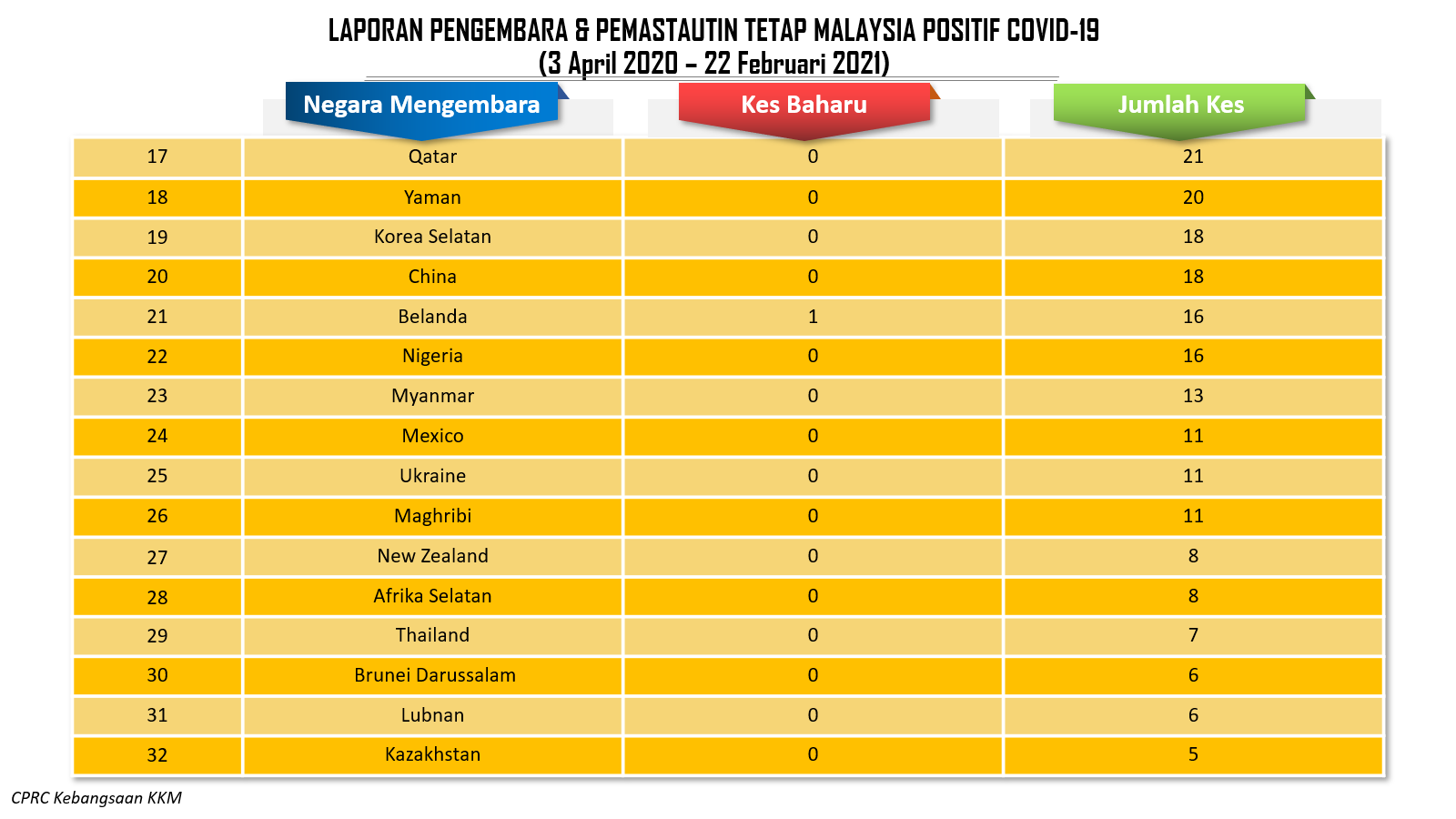 Situasi Terkini COVID-19 di Malaysia 22 Februari 2021